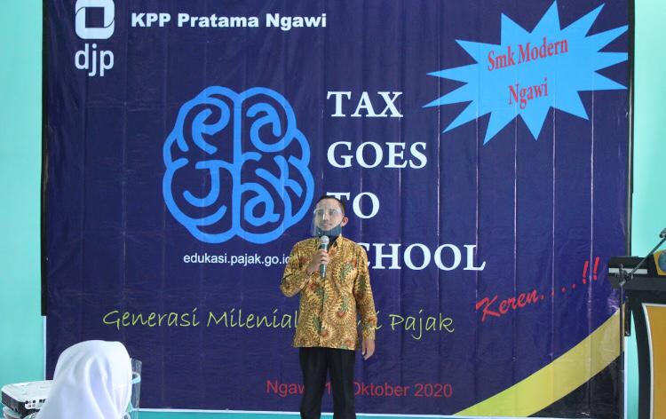 Kantor Pelayanan Pajak (KPP) Pratama Ngawi melakukan kegiatan mengajar kepada siswa SMK Modern Ngawi (Rabu, 14/10). Acara ini dibalut dalam bentuk Tax Goes To School (TGTS) dengan tema Generasi Milenial Ngerti Pajak di Aula SMK Modern Ngawi.