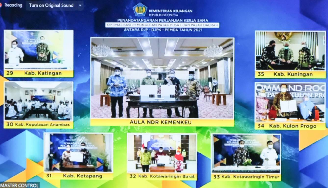 Pemerintah Kabupaten Bantul, Kulon Progo, dan Gunungkidul melakukan tanda tangan Perjanjian Kerja Sama (PKS) tentang optimalisasi pemungutan pajak pusat dan pajak daerah dengan Direktorat Jenderal Pajak dan Direktorat Jenderal Perimbangan Keuangan di D.I. Yogyakarta (Rabu, 21/4). Acara seremoni penandatanganan dilaksanakan secara daring. PKS ini bertujuan mengoptimalkan pemungutan pajak pusat dan pajak daerah.