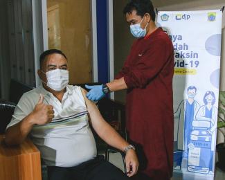 Para pegawai Kantor Pelayanan Pajak (KPP) Pratama Cianjur menerima suntikan Vaksin Covid-19 tahap II di Tempat Pelayanan Terpadu (TPT) KPP Pratama Cianjur (Kamis, 1/4).