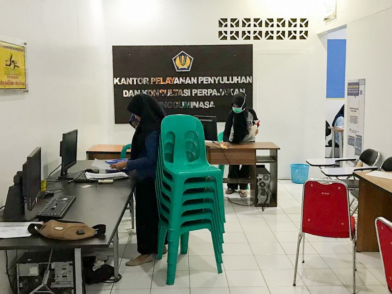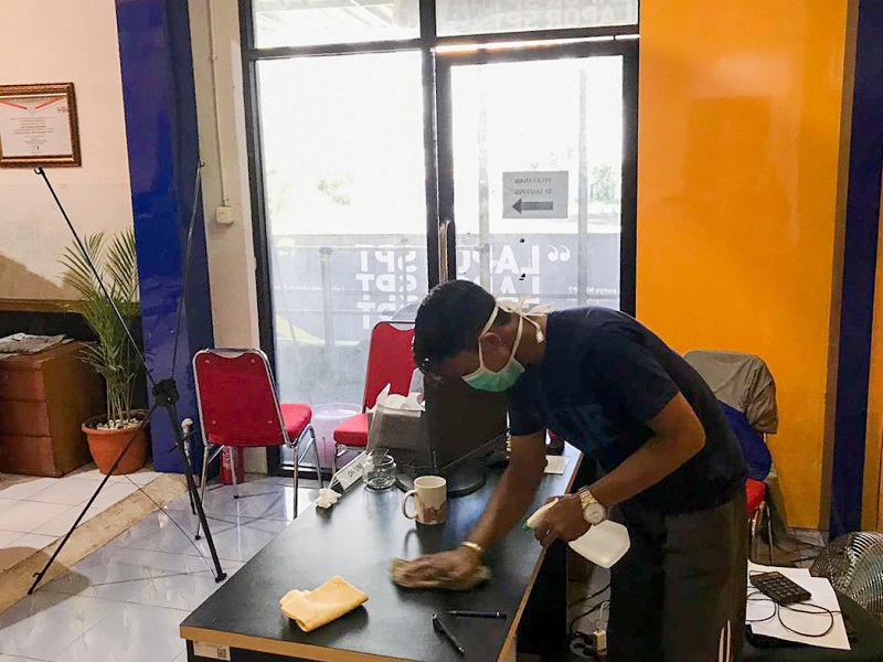 Kantor Pelayanan, Penyuluhan, dan Konsultasi Perpajakan (KP2KP) Sungguminasa mengadakan kegiatan pembersihan area kantor (Rabu, 18/3). Kegiatan ini dilaksanakan agar ketika pelayanan tatap muka kembali lagi dibuka pada tanggal 6 April, wajib pajak bisa mendapatkan kenyamanan dan menghilangkan rasa was-was terhadap penyebaran virus Covid-19.