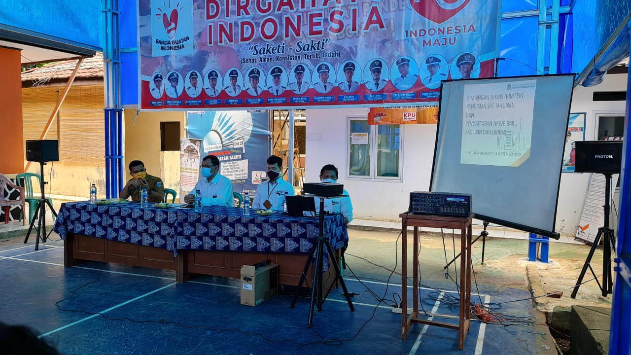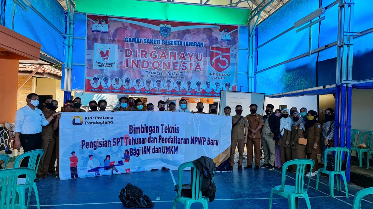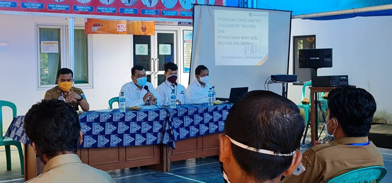 Kantor Pelayanan Pajak (KPP) Pratama Pandeglang menggelar bimbingan teknis pengisian SPT Tahunan untuk UMKM bertempat di Kecamatan Saketi (Senin, 14/9). Kegiatan bimtek ini juga diikuti oleh para pelaku usaha dari Kecamatan Cisata dan Kecamatan Cipeucang. Bimtek dilaksanakan secara tatap muka dengan tetap mematuhi protokol kesehatan di era kenormalan baru.