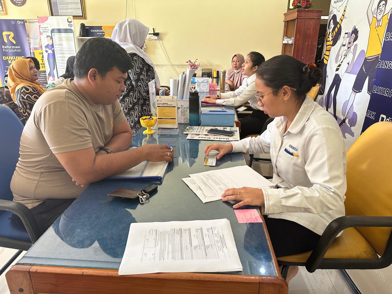 Pada kesempatan ini, Dian sebagai petugas layanan menyampaikan informasi terkait kewajiban apa saja yang harus dipenuhi oleh wajib pajak yang memiliki kegiatan usaha dan sudah ber-NPWP. Petugas melakukan pendampingan untuk pembuatan SPT dan juga membantu proses pembuatan billing atas kewajiban perpajakan UMKM yaitu PP 23/2018 yang masih belum terpenuhi.
