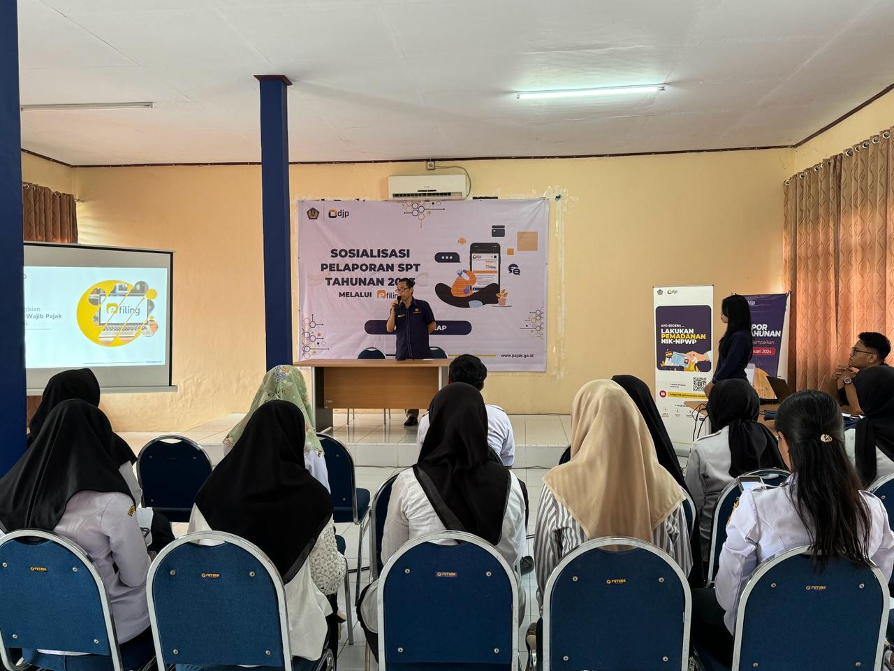 Pemaparan materi dilakukan secara langsung oleh Rio, pelaksana KP2KP Sidrap dengan pokok pembahasan mengenai tata cara pengisian SPT melalui e-Filling.Pelaksana KP2KP Sidrap Rio memaparkan materi terkait tata cara pelaporan SPT Tahunan melalui e-Filling. Rio menyampaikan bahwa wajib pajak ASN setelah mendapatkan bukti potong dari bendahara instansi masing-masing untuk segera melaporkan SPT Tahunan sebelum batas waktu pelaporan SPT pada tanggal 31 Maret 2024