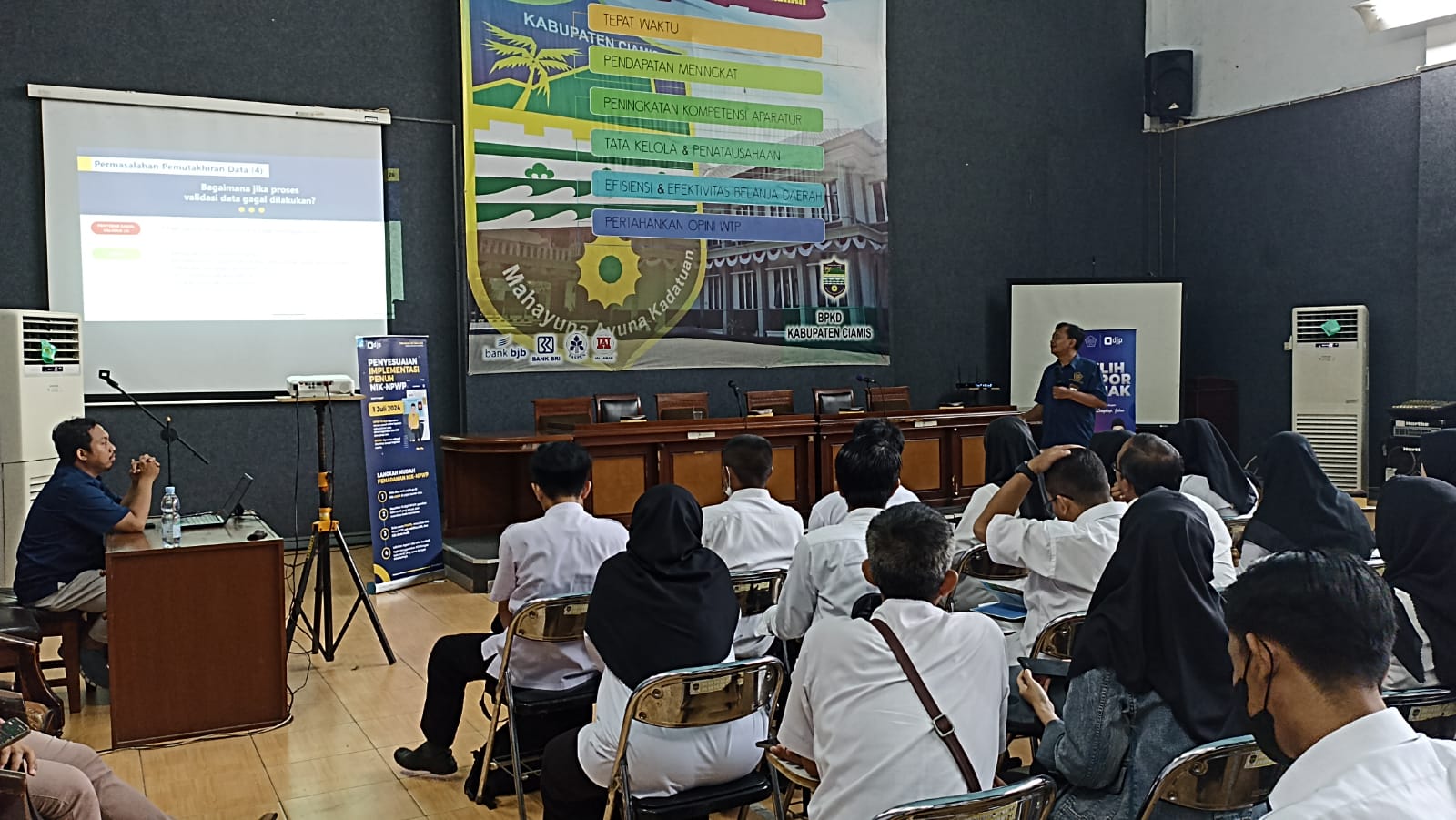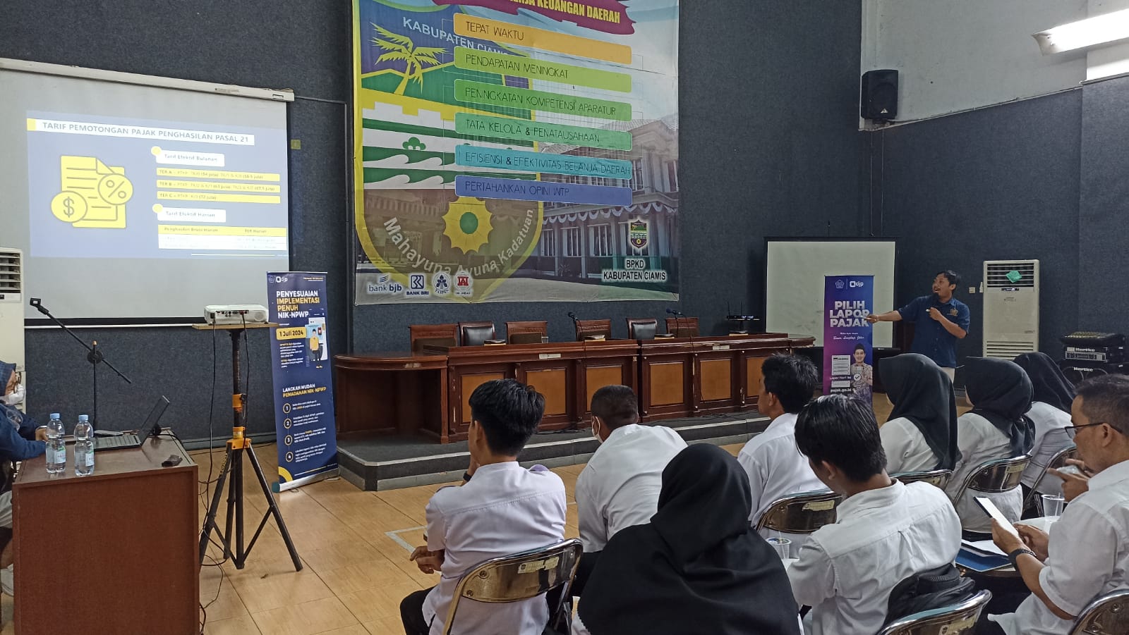 Kantor Pelayanan Pajak (KPP) Pratama Ciamis menggelar sosialisasi perpajakan kepada seluruh bendahara Organisasi Perangkat Daerah (OPD) Kabupaten Ciamis di Aula Badan Pengelolaan Keuangan Daerah Ciamis, Jalan Drs. H. Soejoed nomor 5A Ciamis, (Rabu, 23/1).