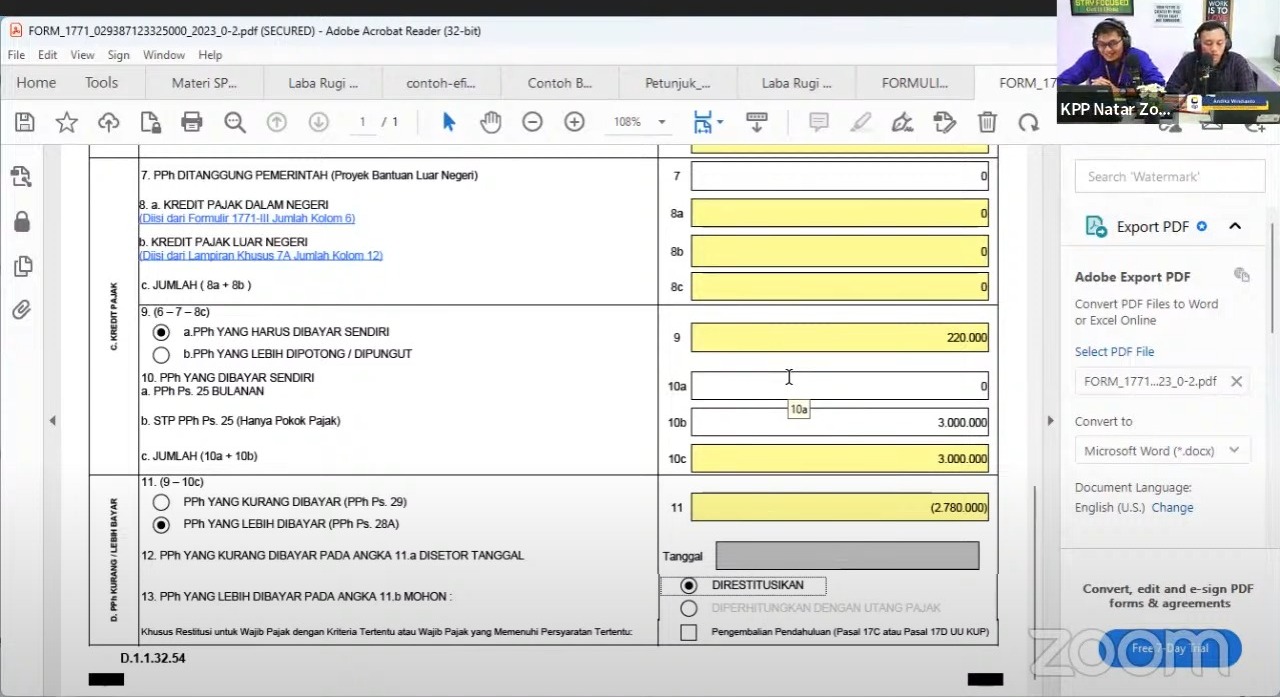 Kantor Pelayanan Pajak (KPP) Pratama Natar menggelar Kelas Pajak untuk Wajib Pajak Badan dengan tema Surat Pemberitahuan (SPT) Tahunan Badan 1771 secara daring melalui aplikasi Zoom Cloud Meeting (Selasa, 10/9).