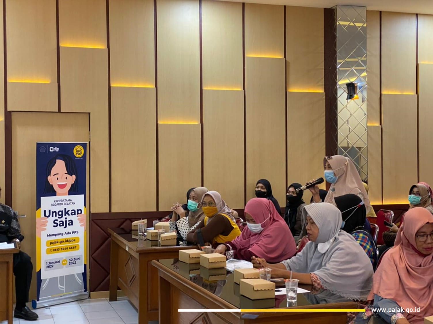 Sebanyak 64 pelaku UMKM hadir dan mengikuti kegiatan sampai akhir. Tim Penyuluh Pajak KPP Pratama Sidoarjo Selatan yang menjadi narasumber menyampaikan, kegiatan ini bertujuan untuk meningkatkan kepatuhan dan kesadaran Wajib Pajak Orang Pribadi pelaku UMKM dalam pemenuhan kewajiban perpajakan.