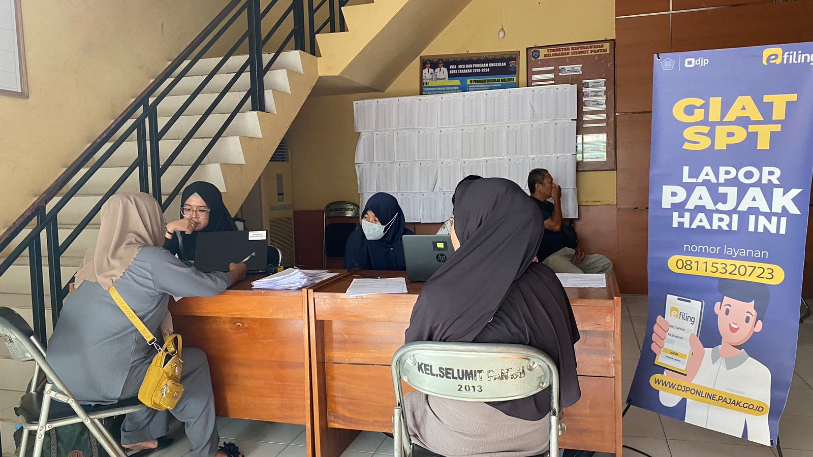 Kantor Pelayanan Pajak (KPP) Pratama Tarakan mengadakan pojok pajak di Kantor Kelurahan Selumit Pantai, Kota Tarakan (Selasa, 3/10). Kegiatan ini bertujuan untuk memberikan pemahaman mengenai pelaporan Surat Pemberitahuan (SPT) Tahunan Orang Pribadi. Kegiatan ini dihadiri oleh warga Kelurahan Selumit Pantai yang ingin dibantu dalam melaksanakan kewajiban pelaporan SPT Tahunan.
