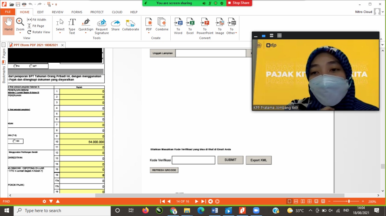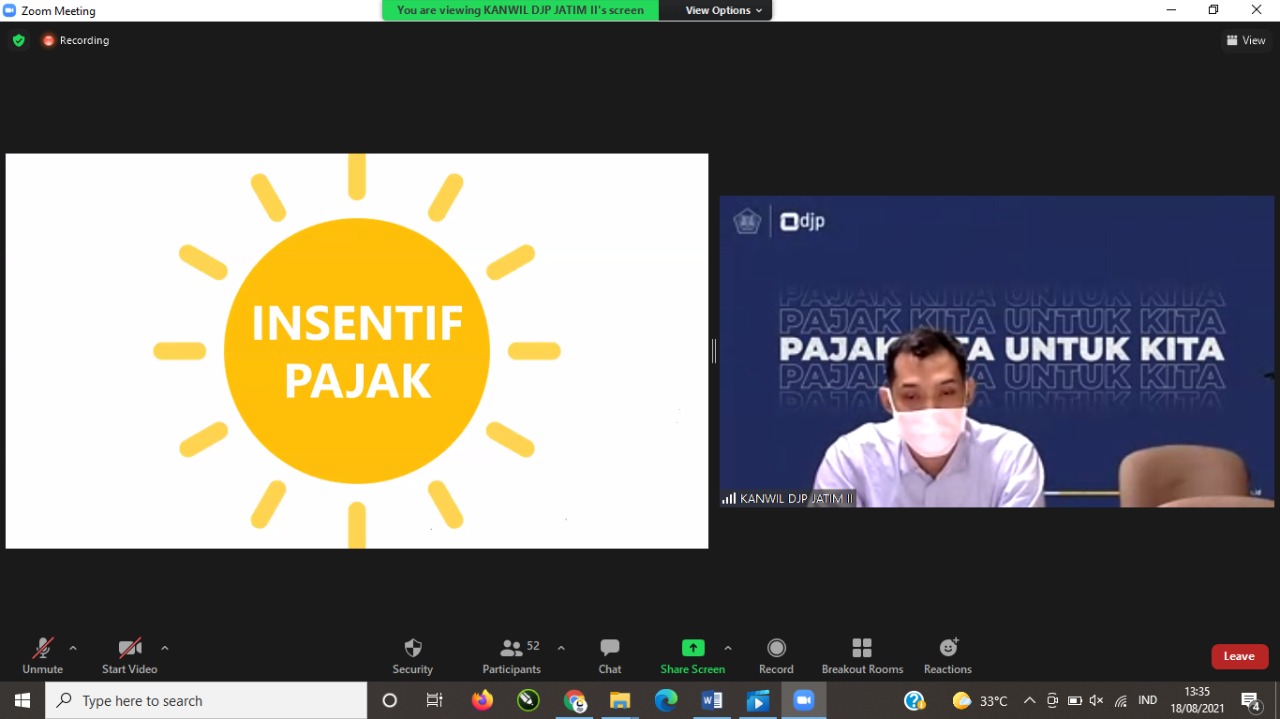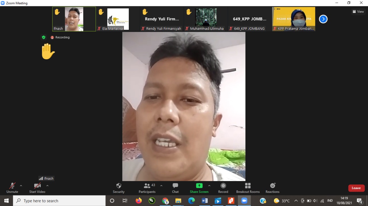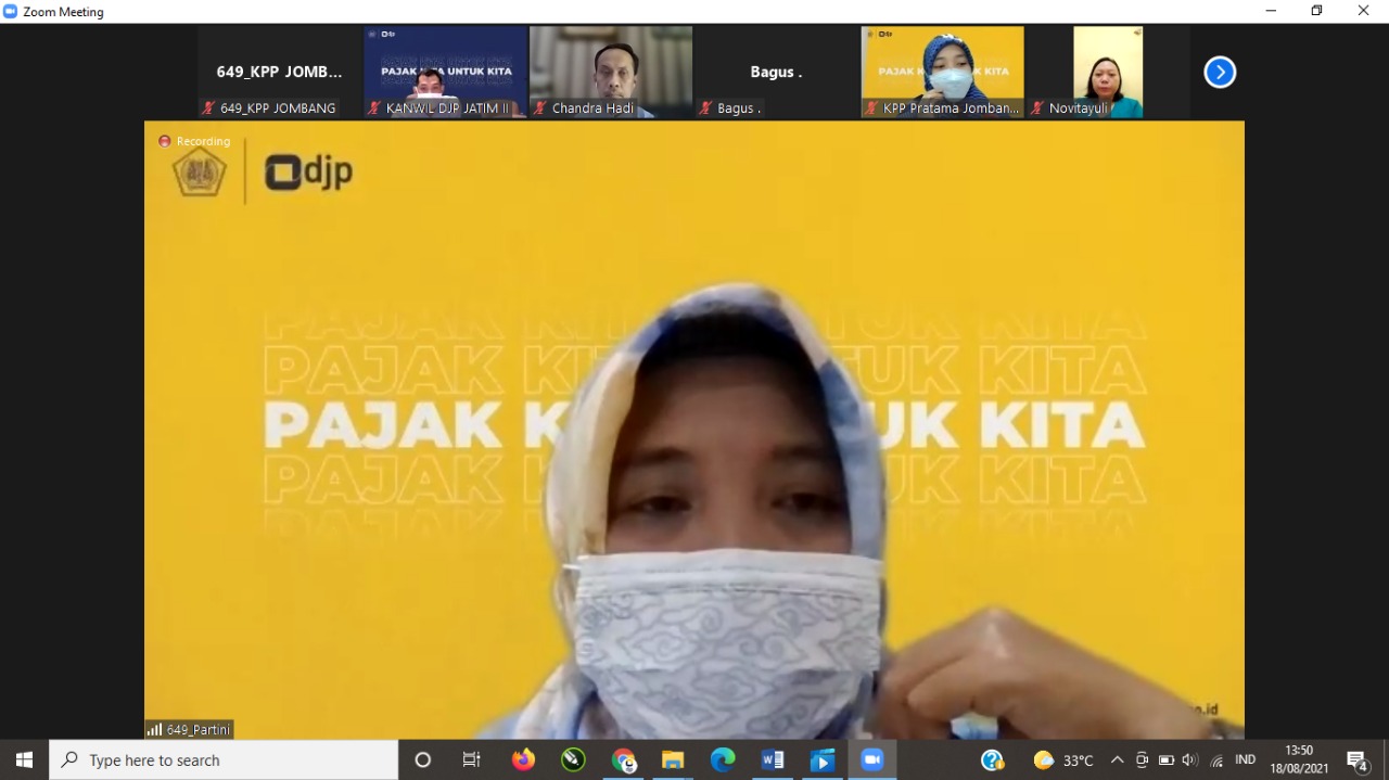 KPP Pratama Jombang bekerja sama dengan Kantor Wilayah DJP Jawa Timur II melaksanakan Edukasi bagi Wajib Pajak Non Karyawan secara daring. Kegiatan ini dihadiri hampir 50 peserta yang merupakan wajib pajak nonkaryawan di Jombang (Rabu, 18/8).