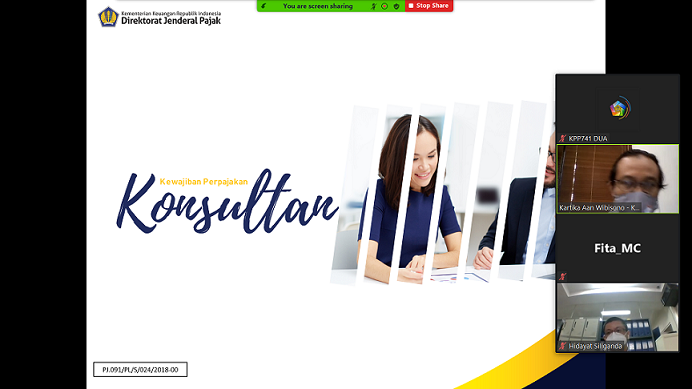 Deny Reza Tachrim, Account Representative (AR) Seksi Ekstensifikasi dan Penyuluhan menyampaikan materi kewajiban perpajakan bagi konsultan pajak. Kemudian dilanjutkan oleh AR Seksi Pengawasan dan Konsultasi IV Kartika Aan yang menyampaikan materi terkait pelaksanaan Konfirmasi Status Wajib Pajak (KSWP) dalam hal pelayanan kepada Konsultan Pajak yang tertuang dalam PMK Nomor 147/PMK.01/2020. Seluruh peserta aktif mengikuti webinar, dengan banyaknya pertanyaan dan diskusi yang disampaikan kepada narasumber.