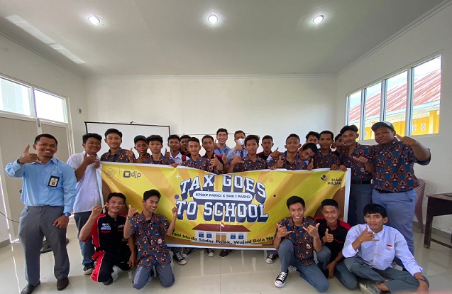 Kantor Pelayanan, Penyuluhan, dan Konsultasi Perpajakan (KP2KP) Parigi mengadakan kegiatan Tax Goes to School (TGTS) bersama dengan para siswa Sekolah Menengah Kejuruan (SMK) 1 Parigi, Kelurahan Bambalemo, Kecamatan Parigi, Kabupaten Parigi Moutong (Rabu, 20/7).