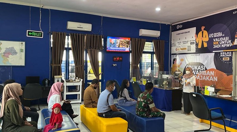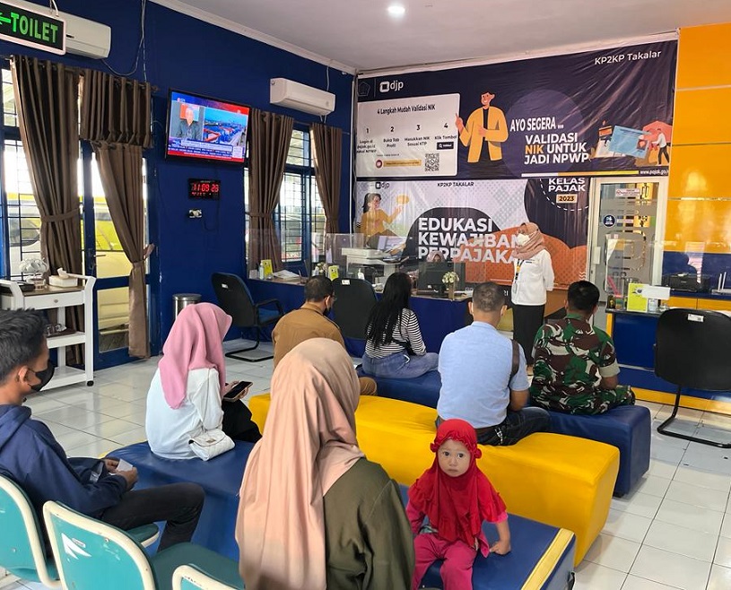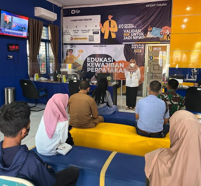 Kantor Pelayanan, Penyuluhan, dan Konsultasi Perpajakan (KP2KP) Takalar memberikan edukasi terkait hak dan kewajiban perpajakan wajib pajak di ruang Tempat Pelayanan Terpadu (TPT) KP2KP Takalar (Senin,18/9). Petugas KP2KP Takalar Andi Rukminah Sabariah Basri menyampaikan beberapa materi edukasi kepada wajib pajak yang datang. Edukasi yang disampaikan memuat materi kewajiban Pelaporan SPT Tahunan Orang Pribadi dan Implementasi penggunaan Nomor Induk Kependudukan (NIK) sebagai Nomor Pokok Wajib Pajak (NPWP).