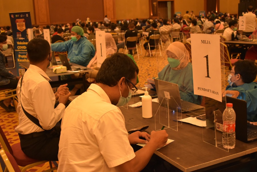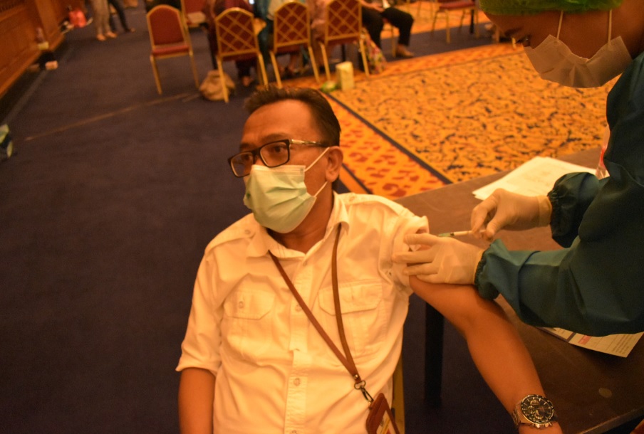 “Alhamdulillah, lumayan ngantuk dan sedikit pusing setelah di-vaksin, namun ini sebagai ikhtiar kita dan demi kebaikan kita bersama,” ujar Vina salah seorang pegawai.
