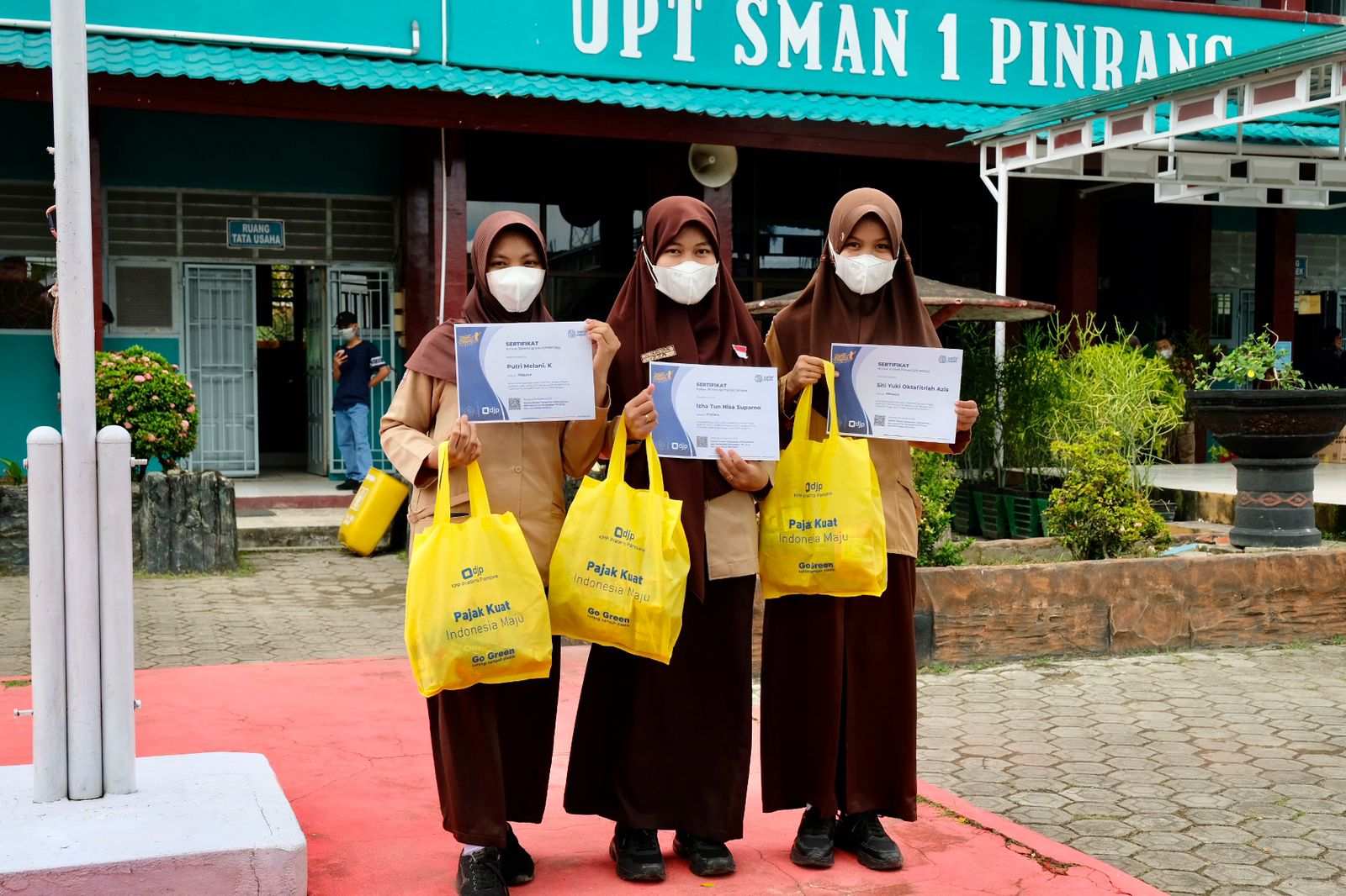 Kantor Pelayanan, Penyuluhan, dan Konsultasi Perpajakan (KP2KP) Pinrang memberikan apresiasi pada SMA Negeri 1 Pinrang usai kedua belah pihak bekerja sama menyelenggarakan acara Pajak Bertutur (Jumat, 27/8). Pemberian apresiasi ini dilangsungkan di halaman SMA Negeri 1 Pinrang, Kabupaten Pinrang.