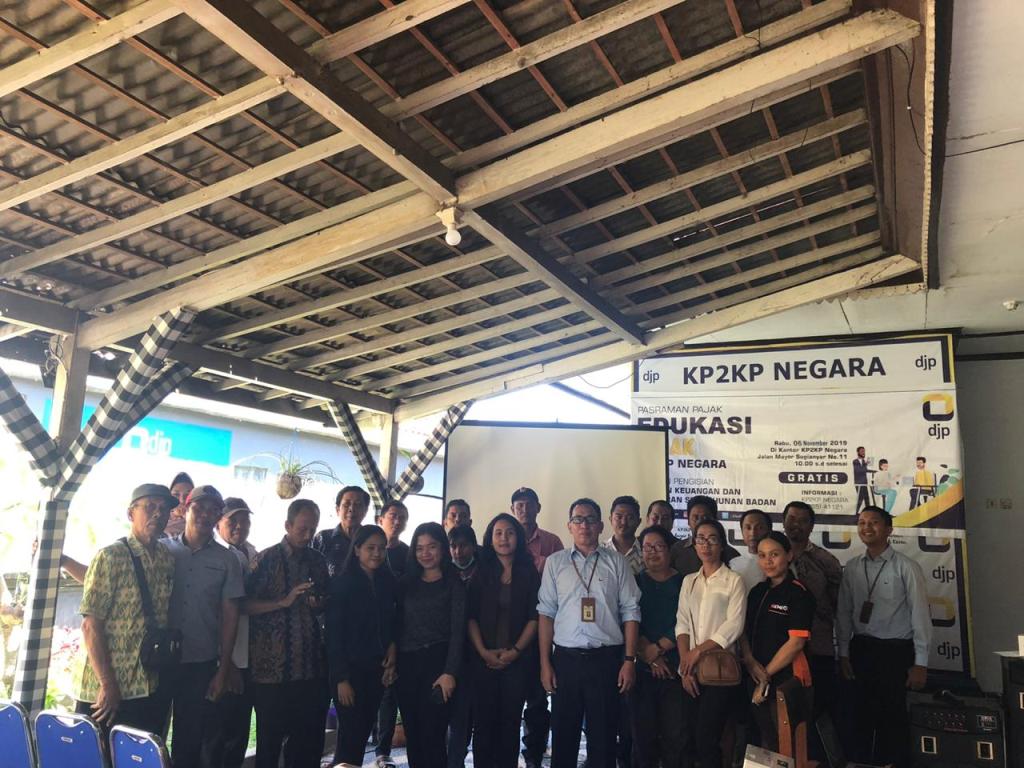 Setelah sukses melaksanakan edukasi perpajakan bagi wajib pajak badan bagian I, Kantor Pelayanan, Penyuluhan dan Konsultasi (KP2KP) Negara kembali mengadakan edukasi perpajakan wajib pajak badan bagian II. Acara edukasi perpajakan kali ini diikuti oleh Wajib Pajak Badan yang belum mengikuti edukasi perpajakan bagian I bertempat di Taman Belakang KP2KP Negara (Rabu, 6/11).
