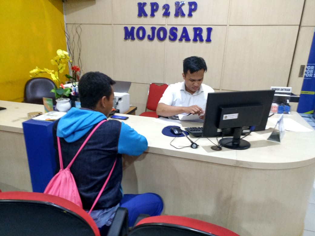 Para petugas petugas pajak mulai melaksanakan survei kepuasan layanan secara elektronik di loket Tempat Pelayanan Terpadu (TPT) KP2KP Mojosari (Kamis, 5/3). Selama ini, survei dilaksanakan secara manual. Salah satu kelemahan survei secara manual adalah seringnya petugas lupa memberikan koin survei kepada wajib pajak.