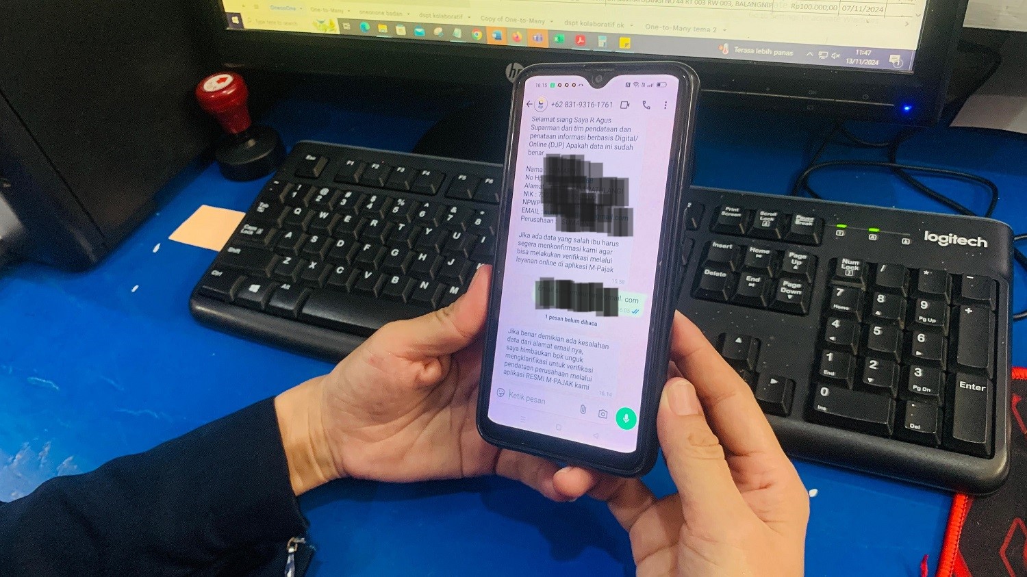 Wajib pajak memperlihatkan isi chat dari penipu tersebut kepada petugas TPT.