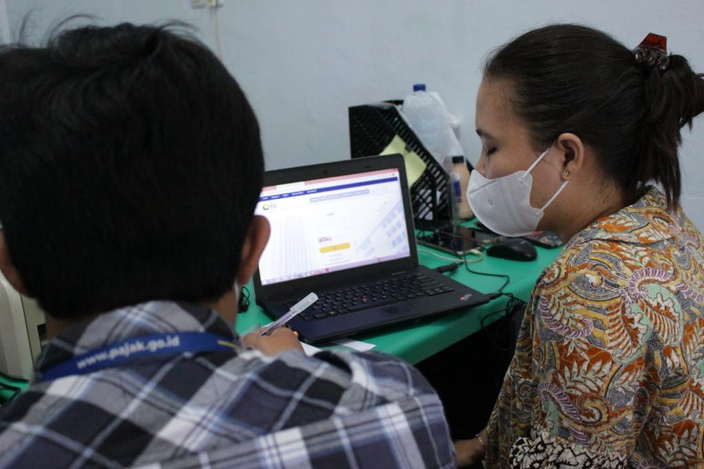 Dengan tetap memperhatikan protokol kesehatan, Petugas Penyuluh KP2KP Banawa Teguh Imansyah memberikan demo terkait tata cara perekaman bukti potong atau bukti pungut melalui e-Bupot hingga dilaporkan dalam bentuk Surat Pemberitahuan (SPT) Masa.