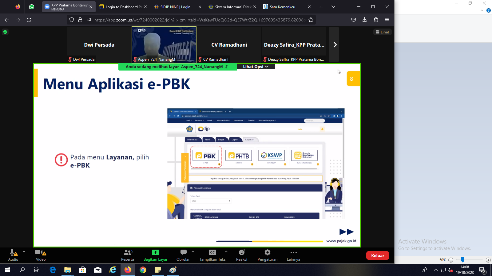 Kantor Pelayanan Pajak (KPP) Pratama Bontang mengadakan Kelas Pajak mengenai Tata Cara Penyampaian Permohonan Pemindahbukuan secara Elektronik atau e-PBK bertempat di Ruang Seksi Pelayanan KPP Pratama Bontang (Kamis, 19/10). Kelas pajak yang diadakan secara daring melalui aplikasi Zoom Meeting ini dihadiri beberapa wajib pajak yang terdaftar pada wilayah kerja KPP Pratama Bontang.