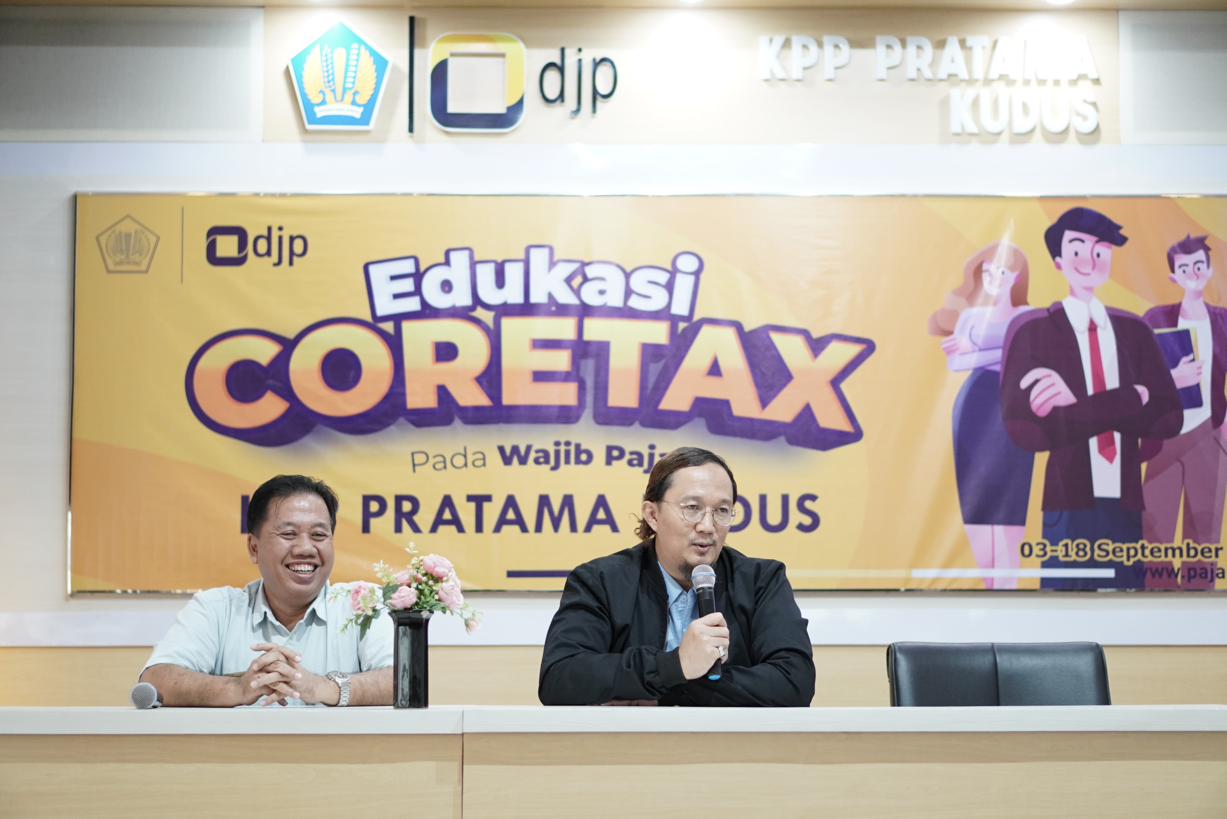 Kantor Pelayanan Pajak (KPP) Pratama Kudus menyelenggarakan edukasi coretax kepada wajib pajak terpilih selama bulan September yang di adakan di Aula Gunung Muria KPP Pratama Kudus (Selasa 3/9). Wajib Pajak terlihat semangat dan antusias dengan adanya coretax ini terlihat dengan tanya jawab yang di sampaikan.