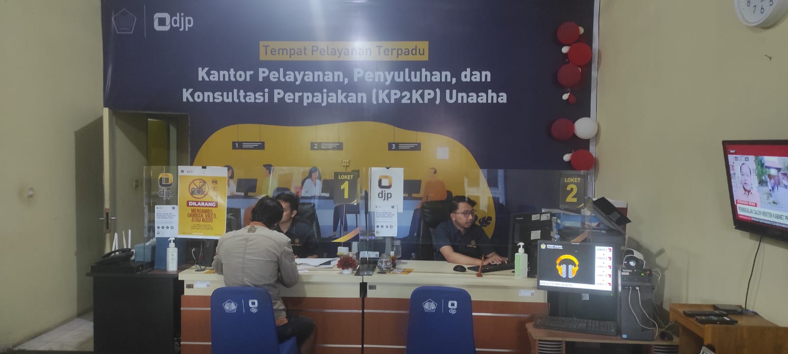 Kantor Pelayanan, Penyuluhan, dan Konsultasi Perpajakan (KP2KP) Unaaha menerima kunjungan seorang Wajib Pajak Orang Pribadi dengan Klasifikasi Lapangan Usaha (KLU) Pertanian Padi Hibrida. Kedatangan wajib pajak ini disambut langsung oleh petugas KP2KP Unaaha Fahrul di Tempat Pelayanan Terpadu (TPT) KP2KP Unaaha, Kab. Konawe (Rabu, 16/10).