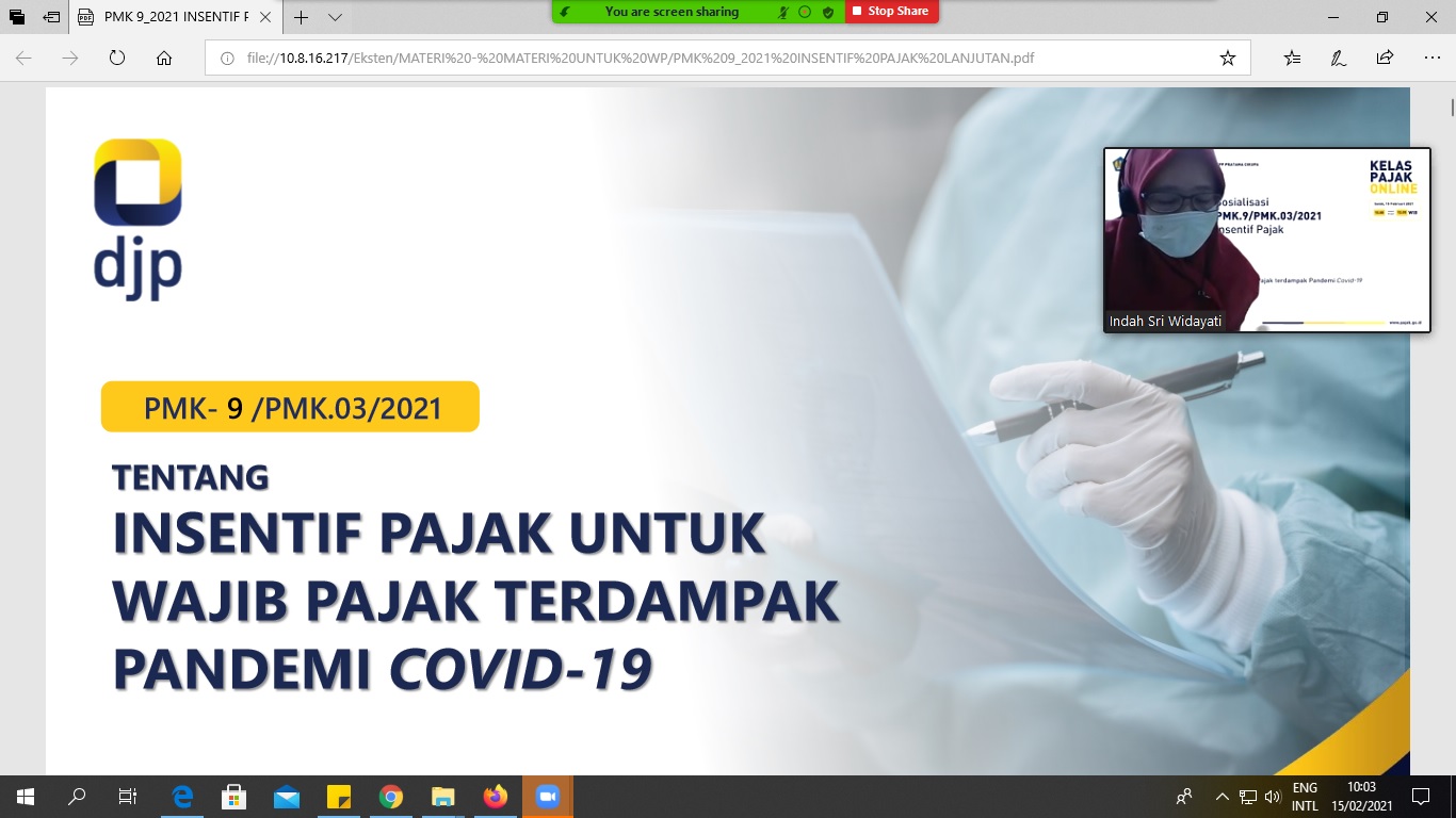 Kantor Pelayanan Pajak (KPP) Pratama Cikupa kembali mengadakan kelas pajak mengenai insentif pajak yang diselenggarakan melalui aplikasi Zoom Meeting bersama 50 Wajib Pajak Badan dan Orang Pribadi di Banten (Senin, 15/2).