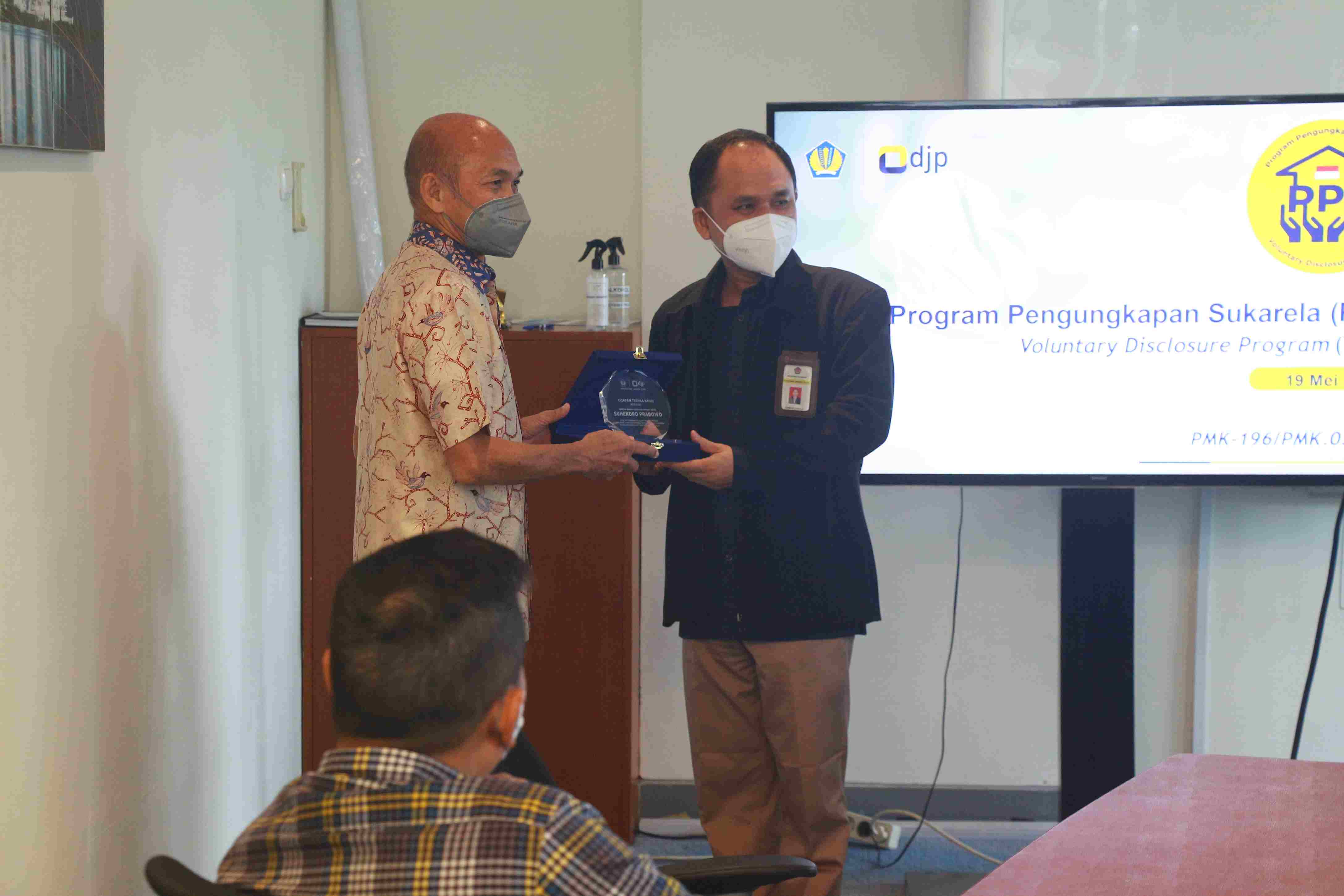 Kegiatan sosialisasi diakhiri dengan pemberian plakat dari KPP Pratama Jakarta Pluit kepada pihak Apartemen Regatta Pantai Mutiara sebagai ucapan terima kasih atas partisipasi dalam kegiatan sosialisasi PPS.