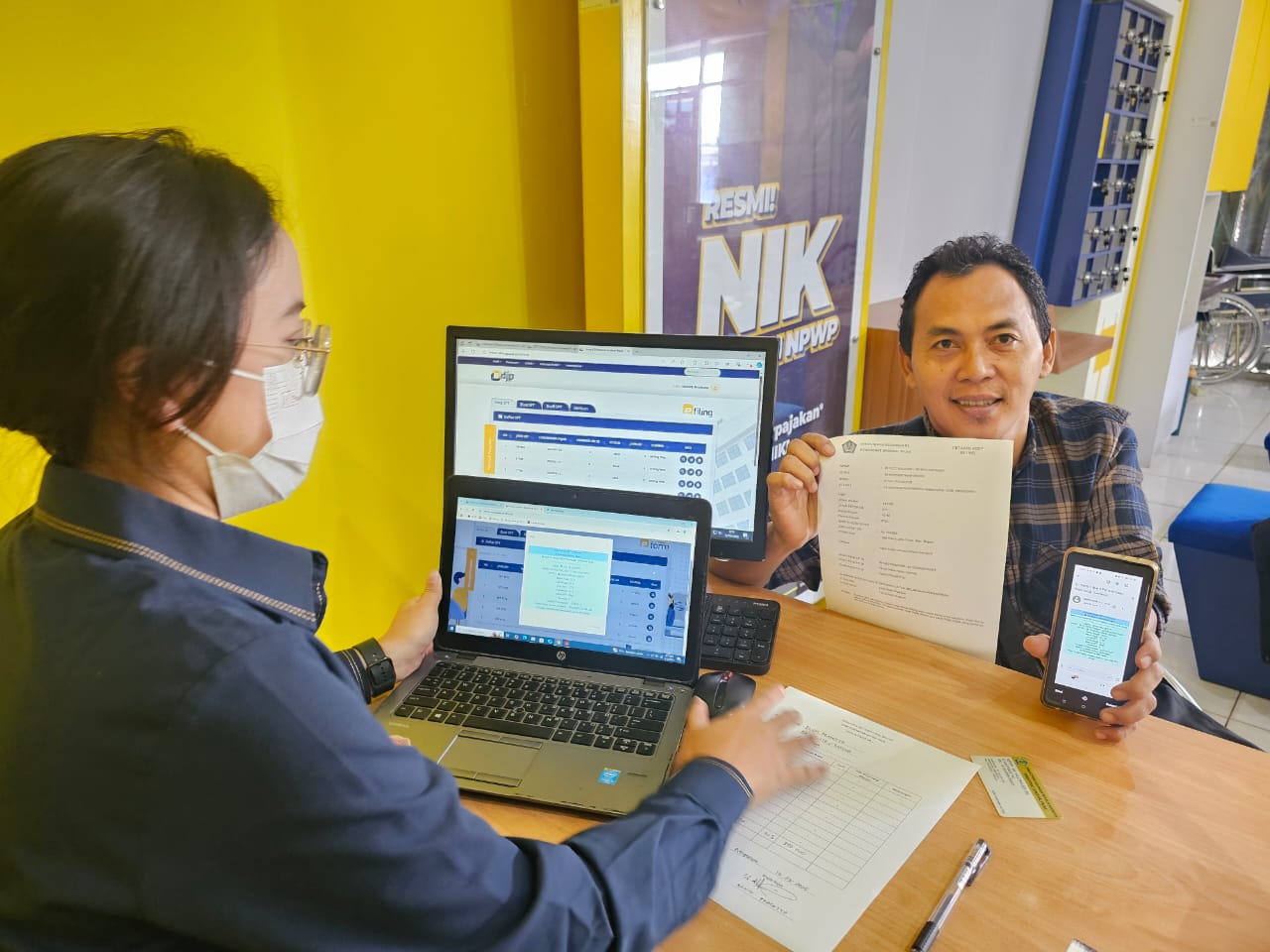 “Setiap tahun saya langganan datang ke sini. Pelaporan SPT Tahunan jadi lebih cepat dan mudah dengan bantuan dari petugas di sini,” ucap Elvin, seorang pengusaha laundry dengan delapan cabang di Pringsewu. “Petugas di sini solutif dan sigap dalam melayani, maka dari itu saya senang laporan di sini,” tutur Elvin ketika ditanya mengenai pengalamannya melakukan pelaporan SPT Tahunan di KP2KP Pringsewu.