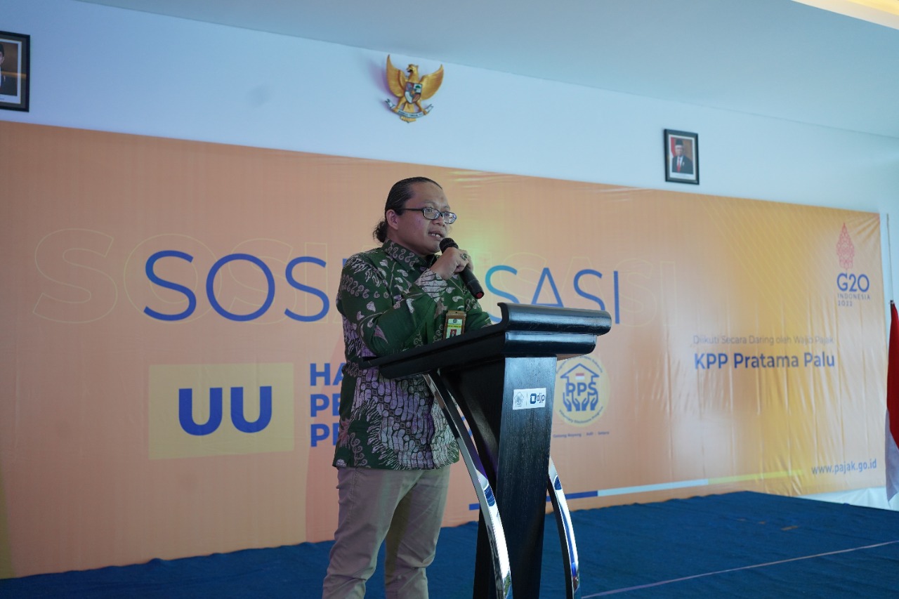 Kantor Pelayanan Pajak (KPP) Pratama Palu melakukan kegiatan sosialisasi Undang-undang Harmonisasi Peraturan Perpajakan (UU HPP) secara daring melalui aplikasi zoom di Aula KPP Pratama Palu (Selasa, 19/4).