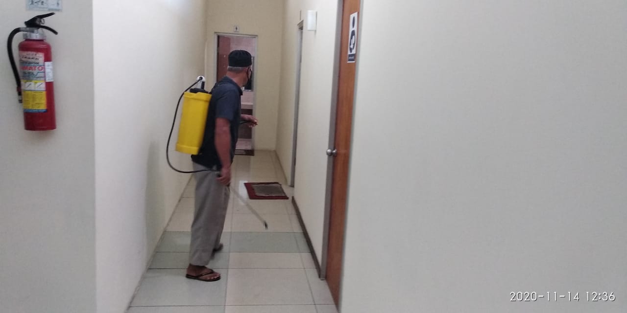 Kantor Pelayanan Pajak (KPP) Pratama Jambi Telanaipura kembali mengadakan penyemprotan disinfektan di seluruh ruangan kantor, sebagai upaya untuk mencegah penyebaran Ccovid-19 di lingkungan KPP Jambi Telanaipura (Sabtu, 14/11). Kegiatan ini dilakukan secara serentak oleh petugas kebersihan KPP Jambi Telanaipura dengan tetap mematuhi protokol kesehatan yang ada.