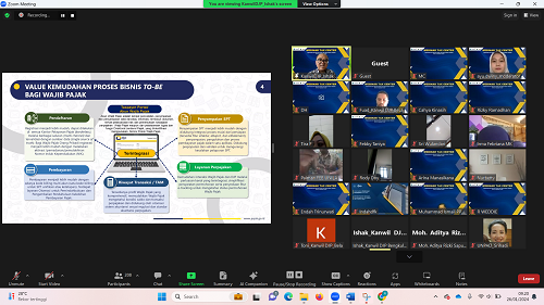 Kanwil Direktorat Jenderal Pajak (DJP) Bengkulu dan Lampung hadir menjadi narasumber dalam acara webinar yang diselenggarakan oleh Tax Center Universitas Lampung, dengan tema “Optimalkan Kepatuhan Pajak: Pemadanan NIK-NPWP dan Rincian Tebaru Perhitungan PPh 21 untuk Pegawai Tetap” yang dilaksanakan secara daring (Jumat, 26/1).