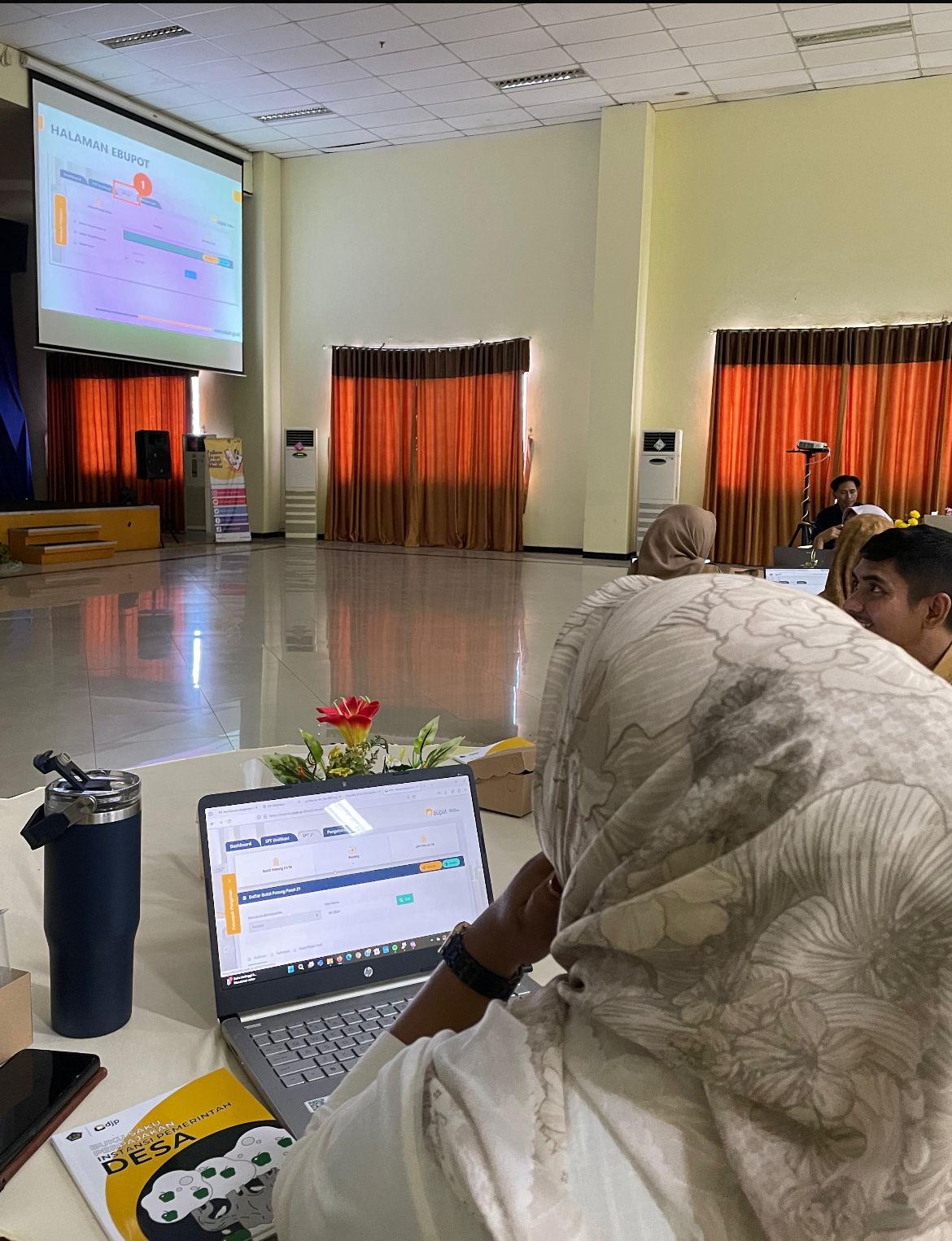 Bimtek ini bertujuan untuk mengedukasi para pengurus desa terkait tata cara memenuhi hak dan kewajiban perpajakan bagi desa, terutama dalam hal pembuatan bukti potong dan pelaporan melalui e-Bupot instansi pemerintah. Kegiatan diawali oleh sambutan Kepala KPP Pratama Sumbawa Besar, Bapak Benny Santosa. Beliau menjelaskan bahwa buku saku desa diharapkan dapat menjadi helpdesk mini dalam membantu para desa dalam memahami perpajakan.