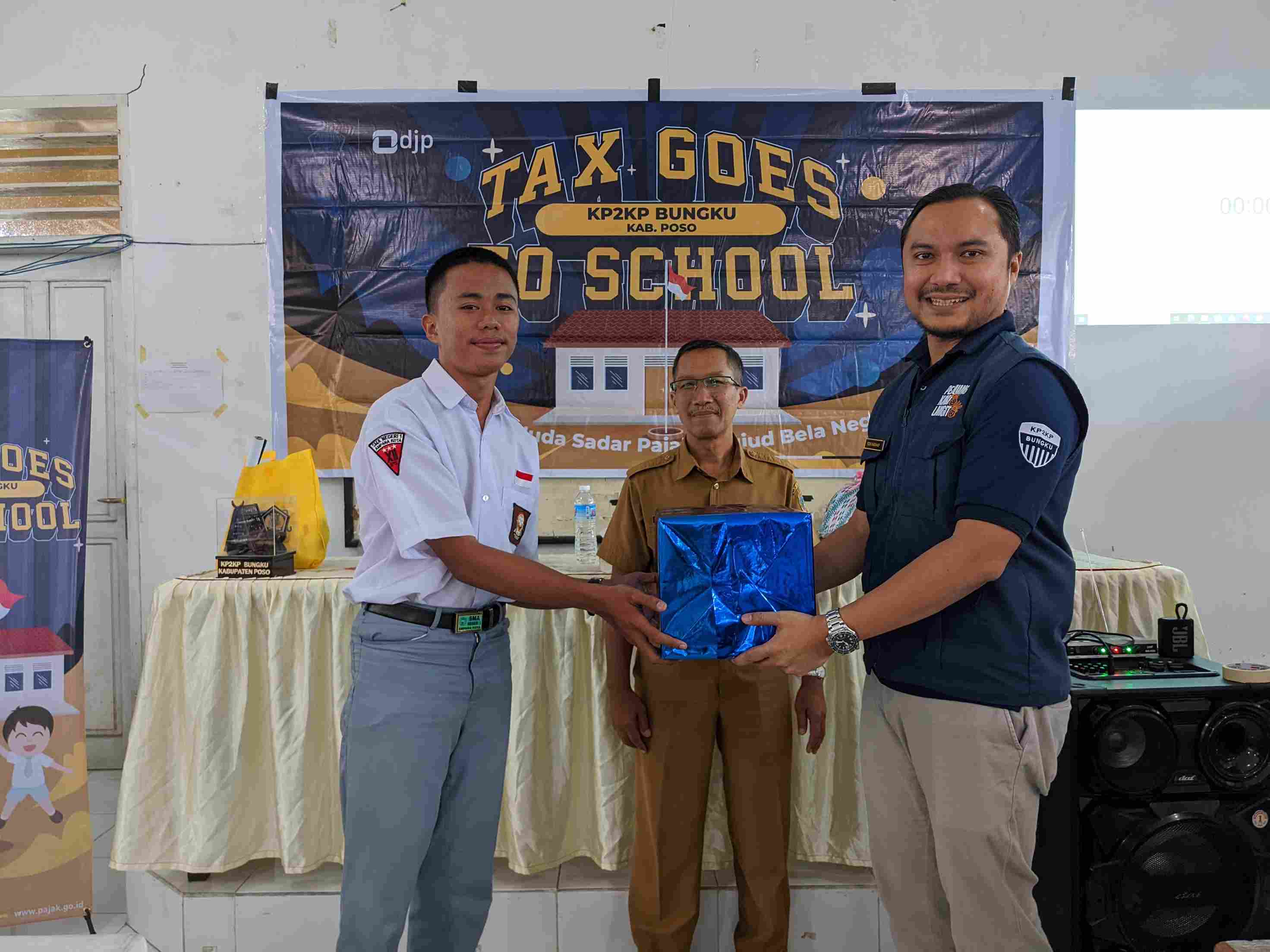 Kantor Pelayanan, Penyuluhan, dan Konsultasi Perpajakan (KP2KP) Bungku menggelar rangkaian acara Tax Goes to School (TGTS) dengan tema “Generasi Muda Sadar Pajak, Wujud Bela Negara” di Sekolah Menengah Atas Negeri (SMAN) 1 Ampana, Kabupaten Tojo Una-Una (Selasa, 23/7). Acara diikuti oleh 30 siswa-siswi yang tergabung dalam Organisasi Siswa Intra Sekolah (OSIS) SMAN 1 Ampana.