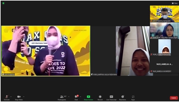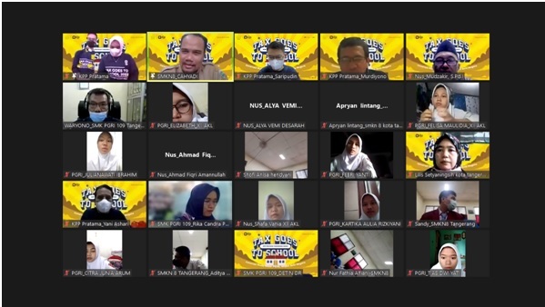 Kantor Pelayanan Pajak (KPP) Pratama Tangerang Barat menggelar Tax Goes to School (TGTS) secara daring melalui aplikasi zoom cloud meeting langsung dari ruang aula KPP Pratama Tangerang Barat, Kota Tangerang (Selasa, 26/7).