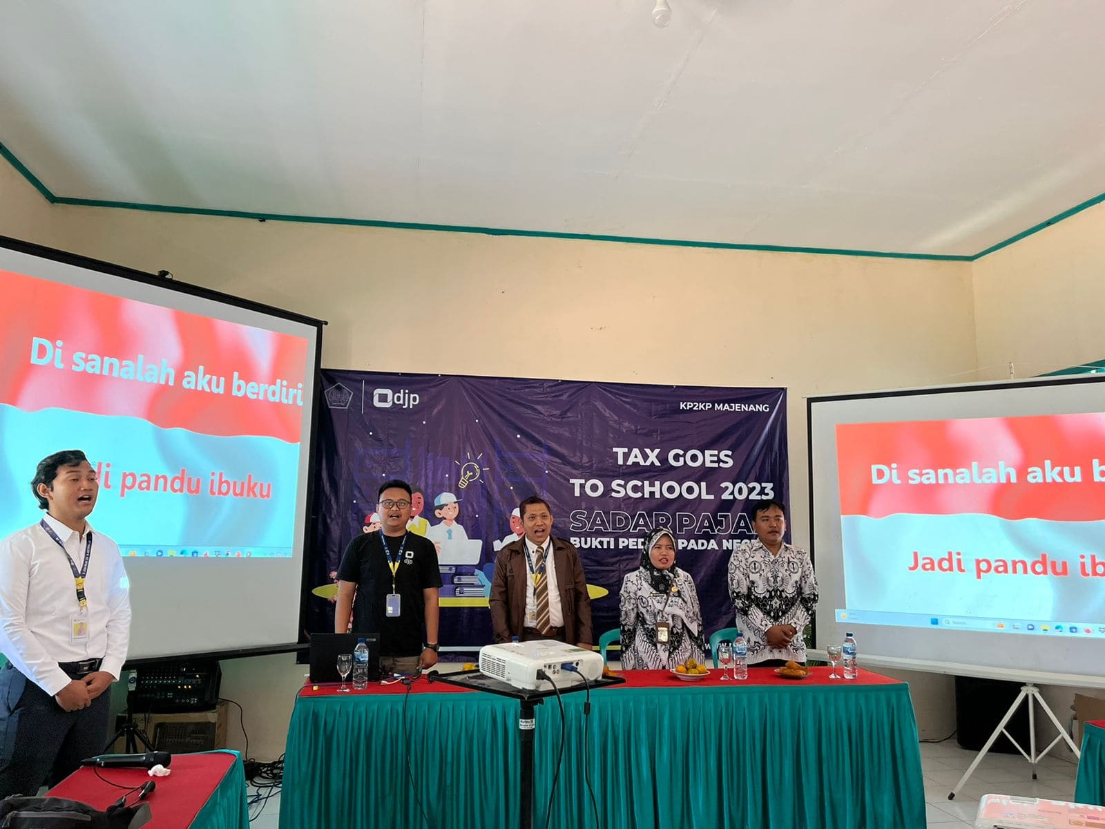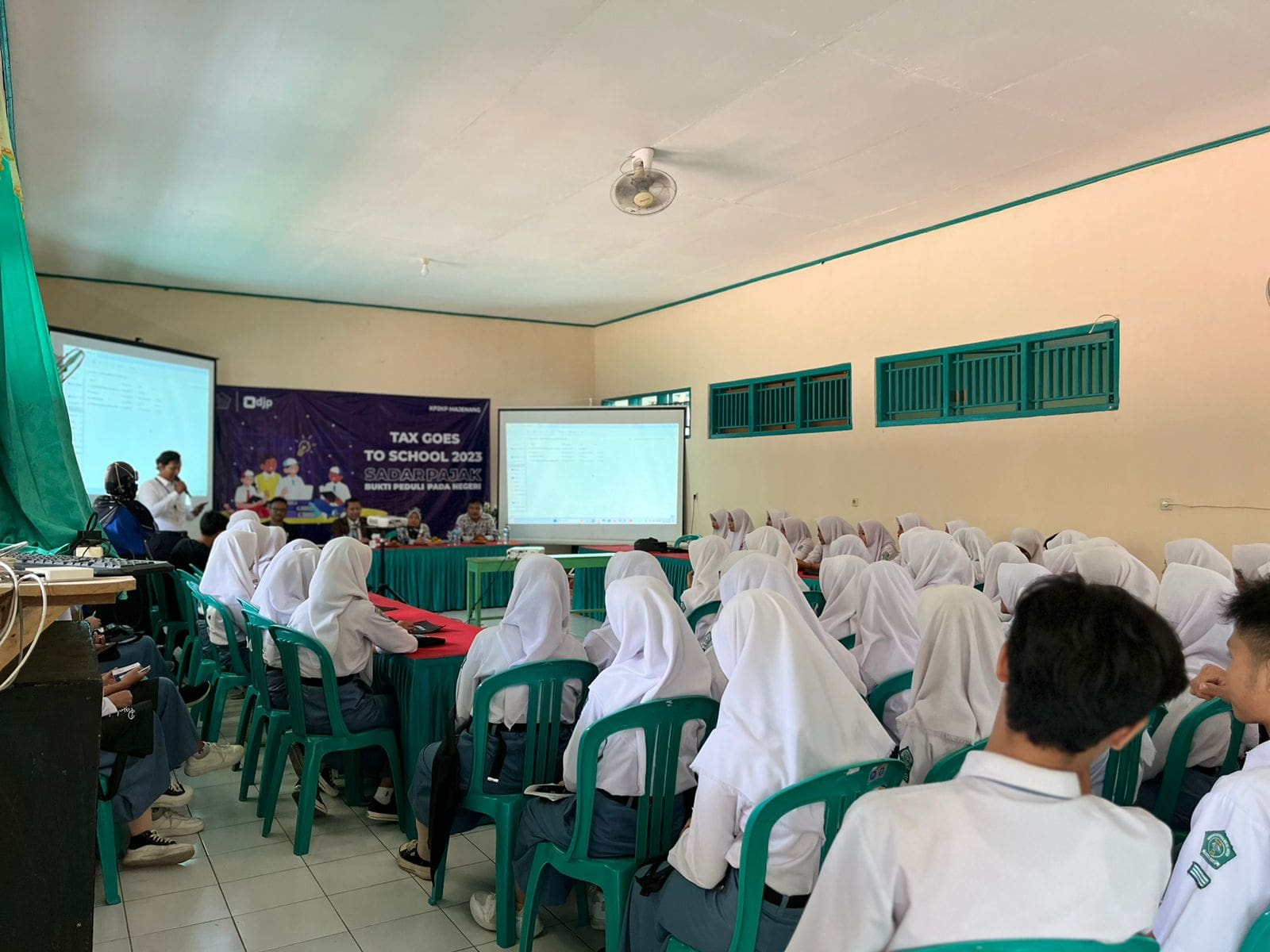 Dalam rangka menanamkan nilai-nilai bela negara dan kesadaran pajak sejak dini, Kantor Pelayanan, Penyuluhan dan Konsultasi Perpajakan (KP2KP) Majenang menyelenggarakan kegiatan Tax Goes To School (TGTS) Tahun 2023 di Sekolah Menengah Kejuruan (SMK) Darussalam Cimanggu (Kamis, 26/10). TGTS kali ini dilaksanakan di Aula SMK Darussalam Cimanggu Kabupaten Cilacap dengan diikuti oleh 80 siswa dan siswi kelas 11 dan 12.