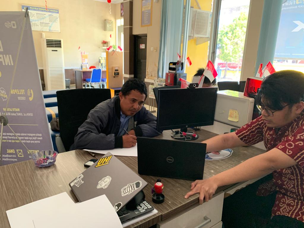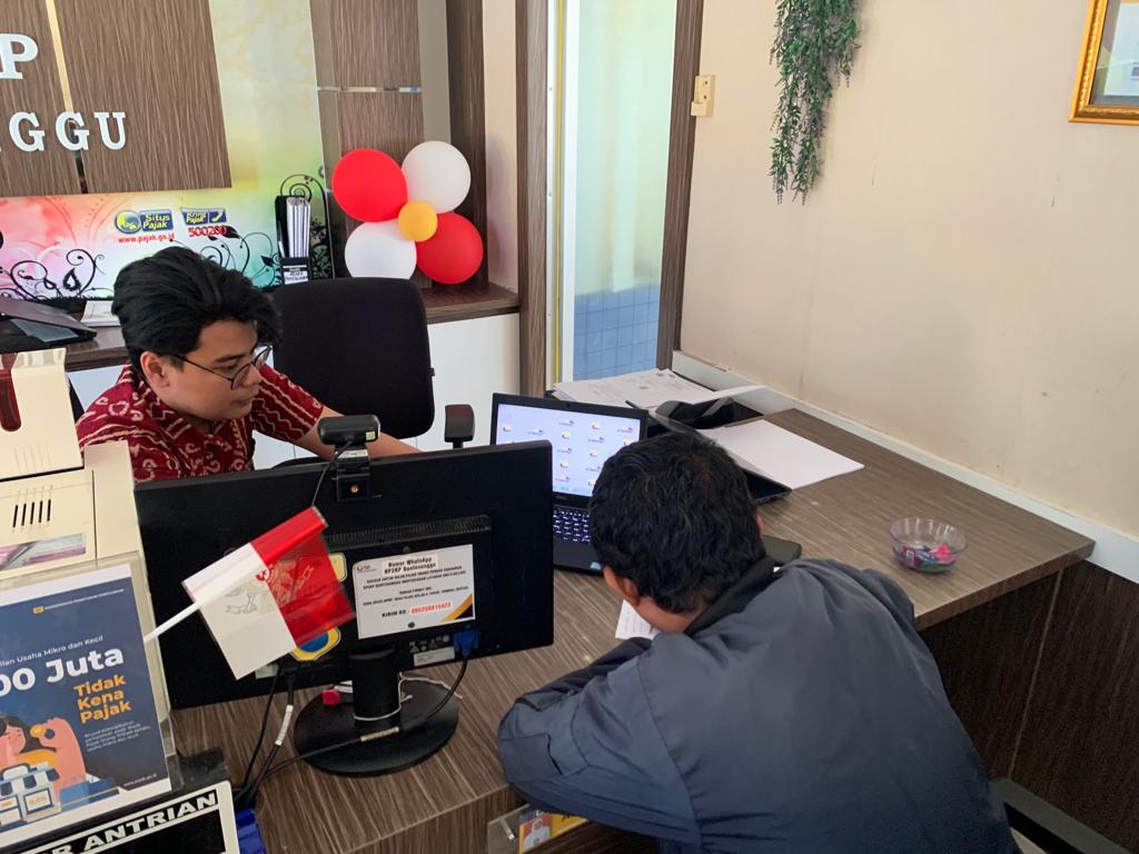Petugas helpdesk Kantor Pelayanan, Penyuluhan, dan Konsultasi Perpajakan (KP2KP) Bontosunggu melakukan asistensi pembuatan faktur pajak pada aplikasi e-Faktur di loket helpdesk KP2KP Bontosunggu, Jalan Pahlawan, Kabupaten Jeneponto (Jumat, 1/9).