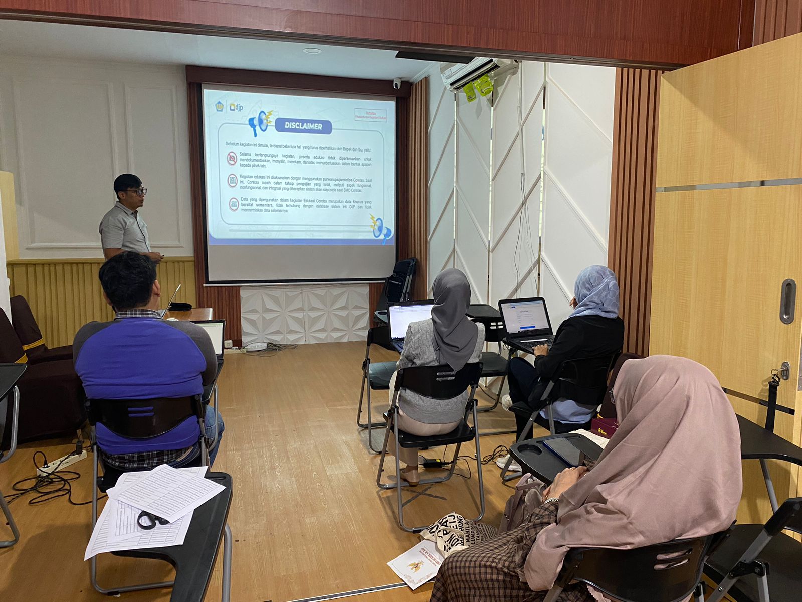 Wajib pajak menghadiri kelas pajak pengenalan Coretax di Ruang Studio Kantor Pelayanan Pajak (KPP) Pratama Bengkulu Satu yang berada di Kelurahan Anggut Atas, Kecamatan Ratu Samban, Bengkulu (Kamis, 12/9).
