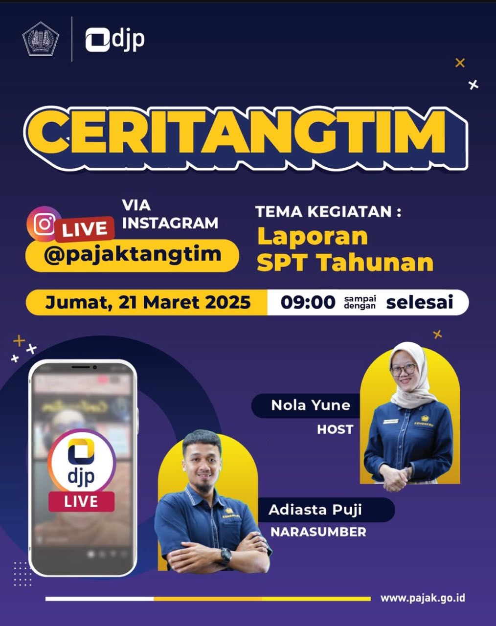 KPP Pratama Tangerang Timur terus berupaya memberikan informasi yang jelas dan transparan demi memberikan pemahaman tata cara SPT Tahunan agar kewajiban perpajakan bisa dilakukan dengan baik, benar, dan juga tepat waktu mengingat periode penyampaian SPT Tahunan Orang Pribadi akan segera berakhir pada 31 Maret 2025.