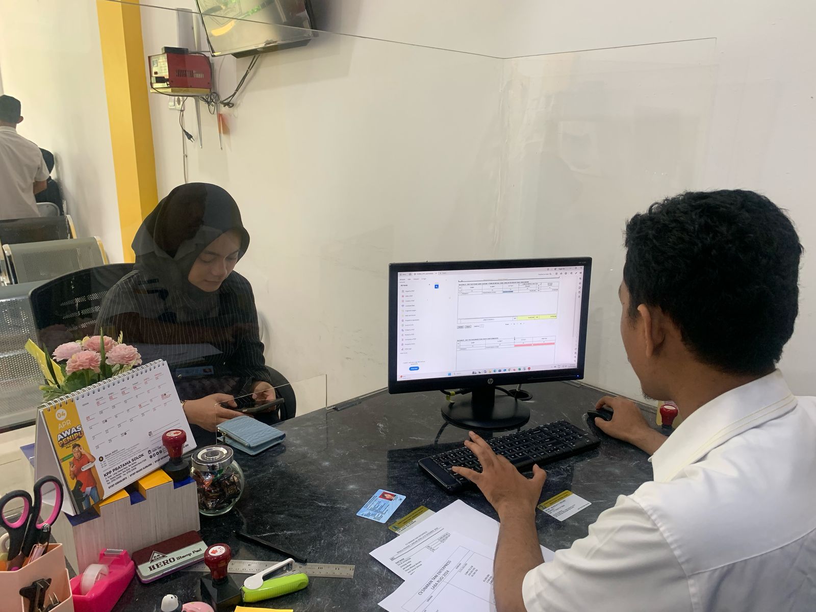 Petugas KP2KP Padang Aro, Thomi Arwin Hafizh, memastikan wajib pajak telah membawa dokumen dan kelengkapan yang diperlukan untuk pelaporan SPT Tahunan secara online.