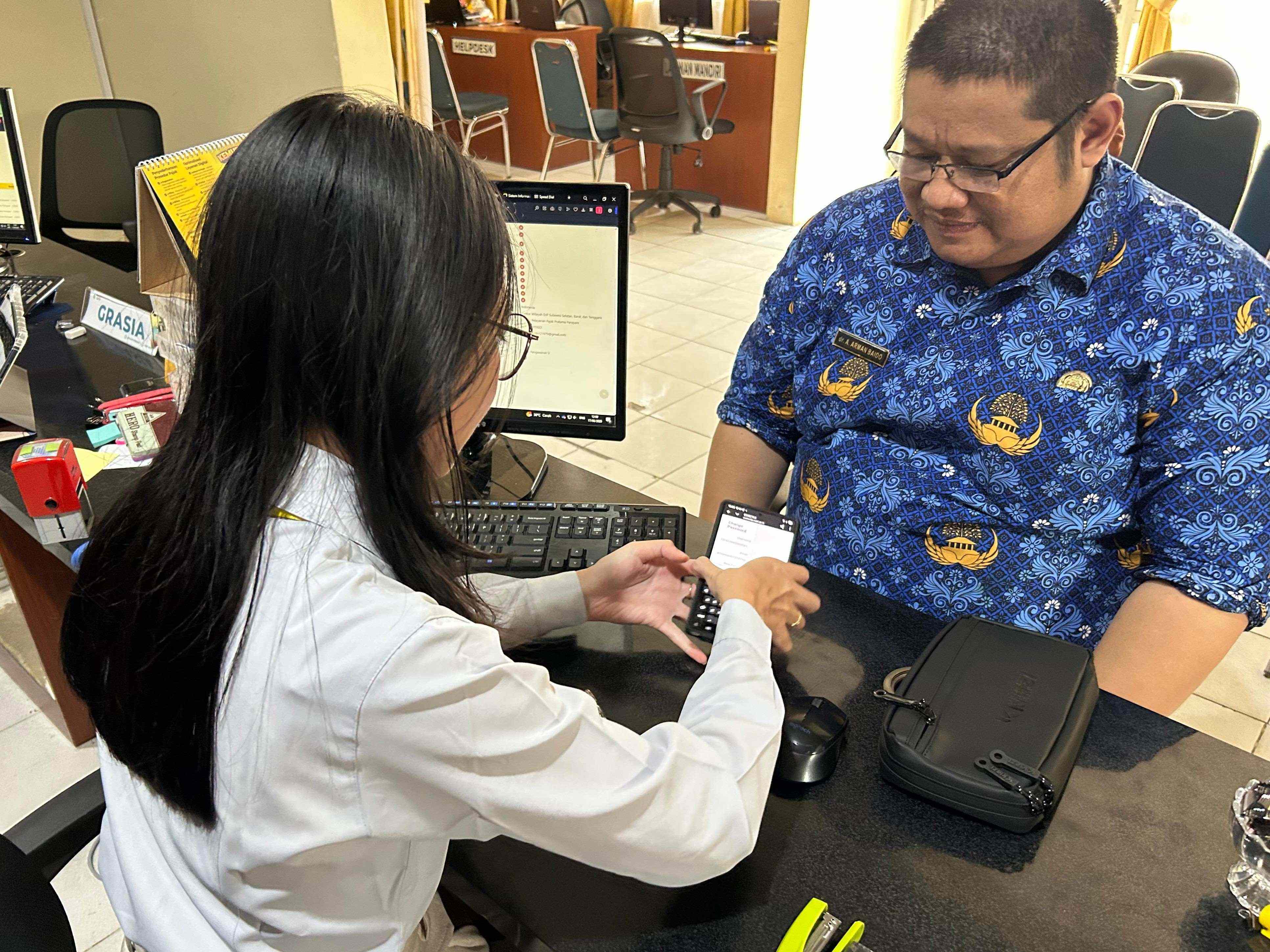 Dalam rangka mendukung impementasi Coretax DJP, Kantor Pelayanan, Penyuluhan, dan Konsultasi Perpajakan (KP2KP) Pinrang memberikan edukasi kepada salah satu wajib pajak mengenai sistem Coretax DJP di Loket Helpdesk KP2KP Pinrang, Kabupaten Pinrang (Senin, 16/6).