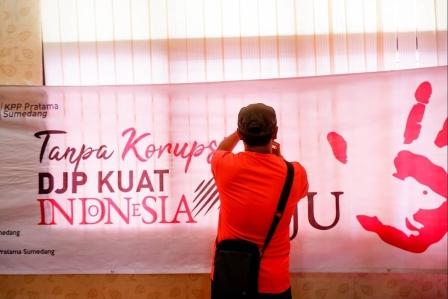 KPP Pratama Sumedang menyelenggarakan peringatan Hari Anti Korupsi Sedunia (Hakordia) 2019 di halaman KPP Pratama Sumedang (Jumat, 13/12). Dalam kesempatan ini, seluruh pegawai berkomitmen untuk memerangi korupsi dengan menandatangani spanduk antikorupsi.