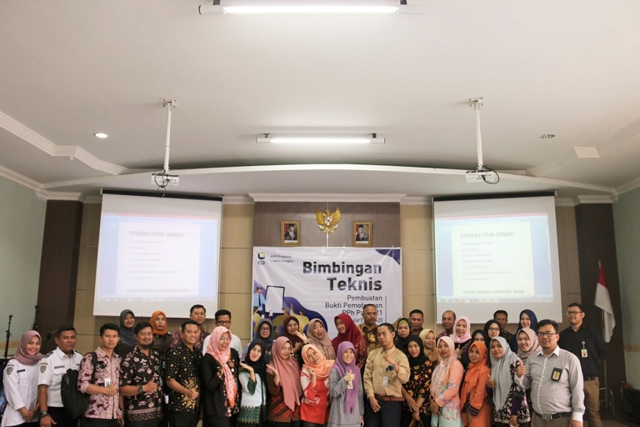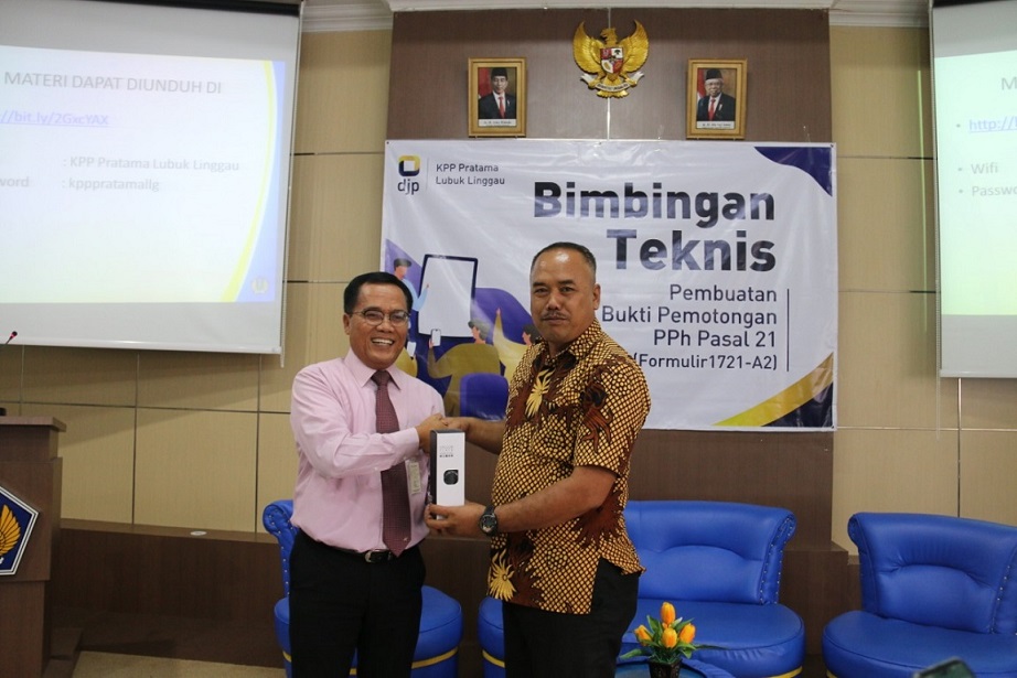 KPP Pratama Lubuklinggau menggelar bimbingan teknis pembuatan Bukti Pemotongan PPh Pasal 21 (Kamis, 30/1). Bimtek di Aula lantai dua KPP Pratama Lubuk Linggau tersebut dihadiri tidak kurang dari 40 bendahara OPD Pemerintah Kota Lubuklinggau dan 7 unit vertikal di Lubuklinggau.