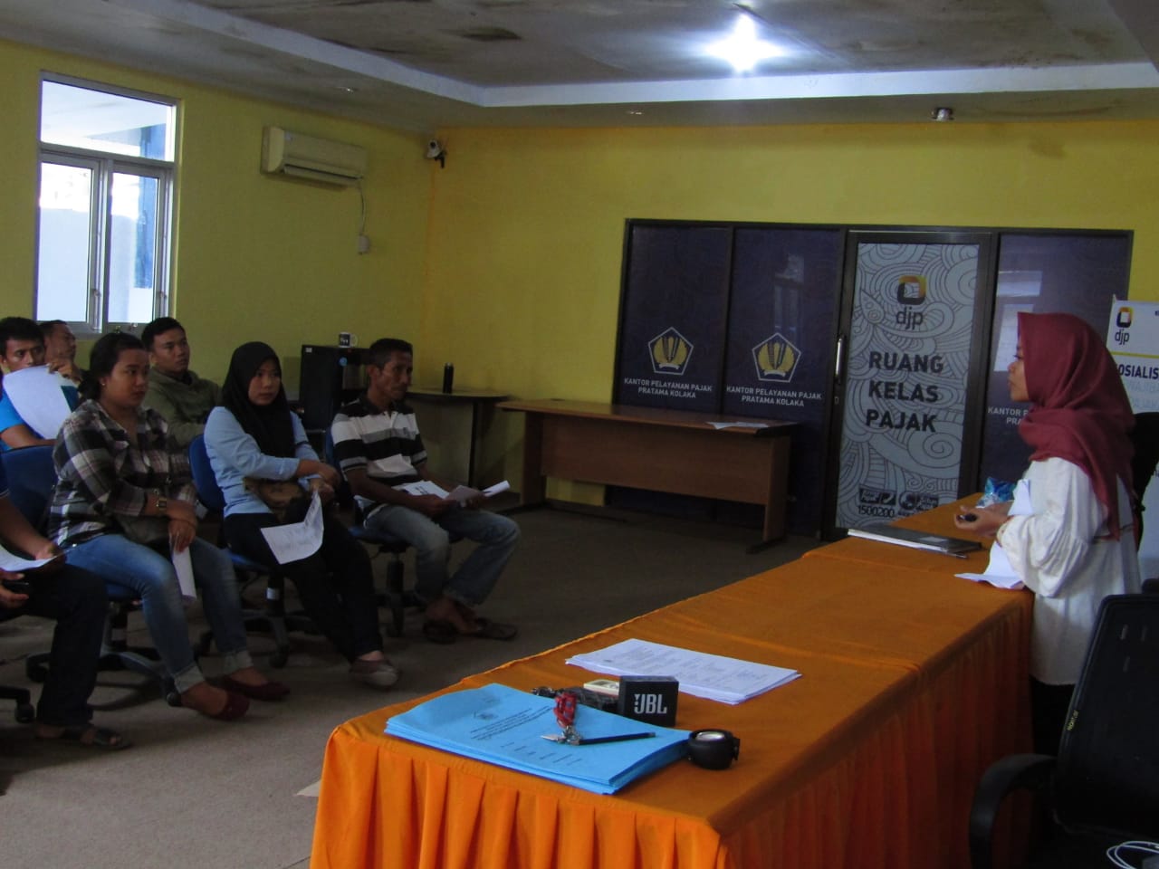 Kantor Pelayanan Pajak (KPP) Pratama Kolaka melakukan kegiatan Sosialisasi Kewajiban Perpajakan bagi wajib pajak baru karyawan di Aula Pos Pelayanan KPP Pratama Kolaka (Senin, 3/2). Kegiatan ini dihadiri oleh 11 wajib pajak karyawan yang baru mendaftarkan diri untuk dapat Nomor Pokok Wajib Pajak (NPWP).