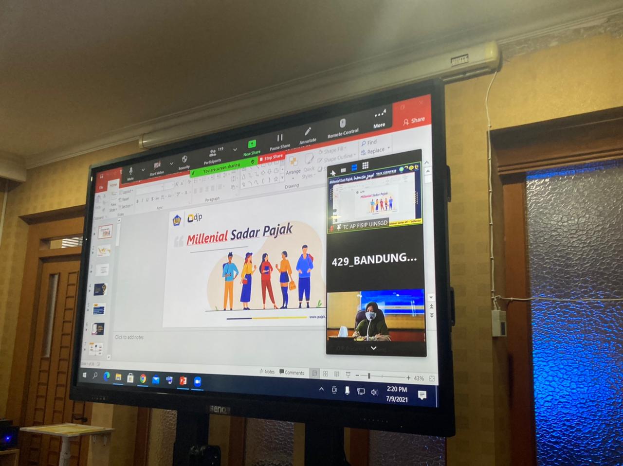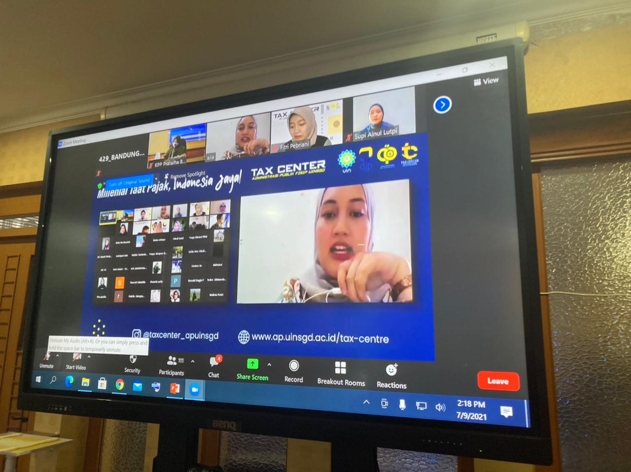 Kantor Pelayanan Pajak (KPP) Pratama Bandung Cicadas bersama Tax Center UIN Sunan Gunung Djati Bandung menggelar Webinar bertajuk “Milenial Taat Pajak, Indonesia Jaya!” melalui zoom meeting dan juga disiarkan secara langsung di akun media sosial instagram @pajakcicadas dan @taxcenter_apuinsgd (Jumat, 9/7) .