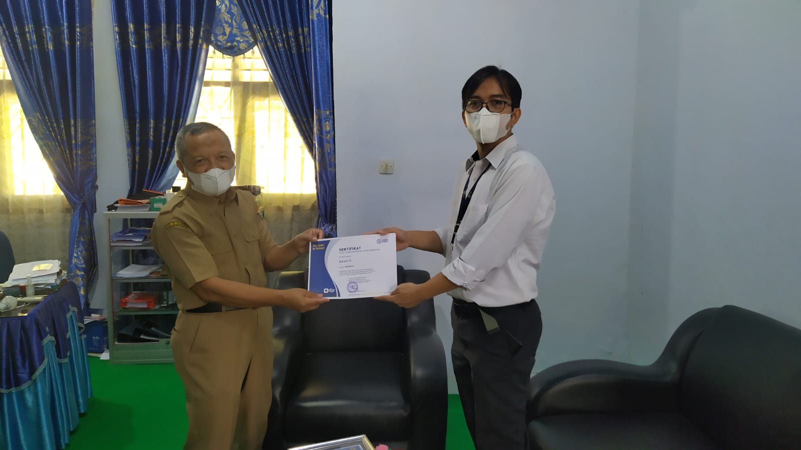 Kegiatan kali ini pada intinya adalah serah terima suvenir beserta sertifikat kegiatan TGTS tahun 2021 yang dilakukan oleh Yanuar selaku Kepala KP2KP Unaaha kepada pihak SMKN 1 Unaaha yang diwakili oleh Kartowiyono selaku Kepala SMKN 1 Unaaha dan Suwasni selaku Wakil Kepala SMK N 1 Unaaha bagian kurikulum. Sehubungan dengan pandemi Covid-19 yang masih melanda Indonesia, kegiatan kali ini dilaksanakan dengan tetap memperhatikan protokol kesehatan.