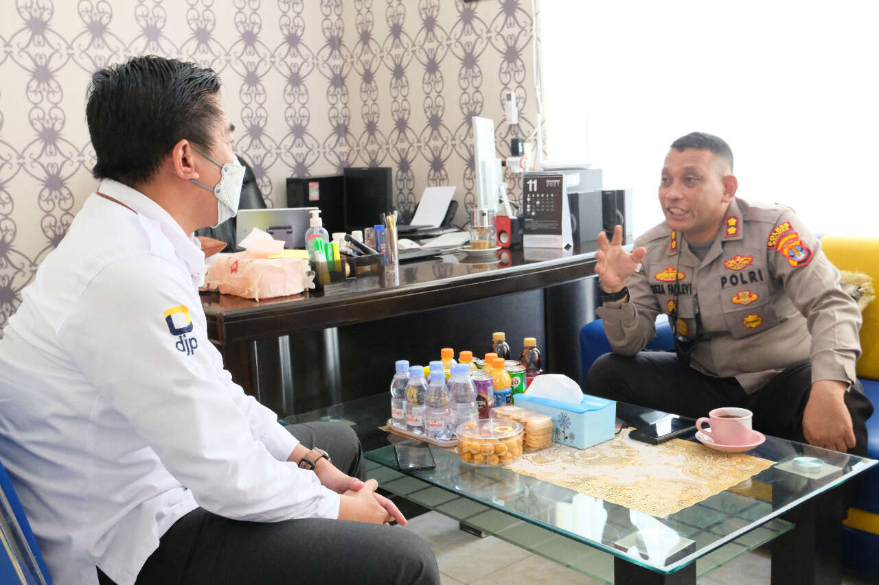 Kepala KP2KP Malinau Andika Setiawan menyambut kedatangan Kepala Kepolisian Resor (Polres) Malinau Reza Fahlevi dan di KP2KP Malinau, Kab. Malinau (Senin, 01/11). Pertemuan ini merupakan upaya KP2KP Malinau dalam meningkatkan kerjasama antara KP2KP Malinau dengan satuan kerja yang berada di Kabupaten Malinau.