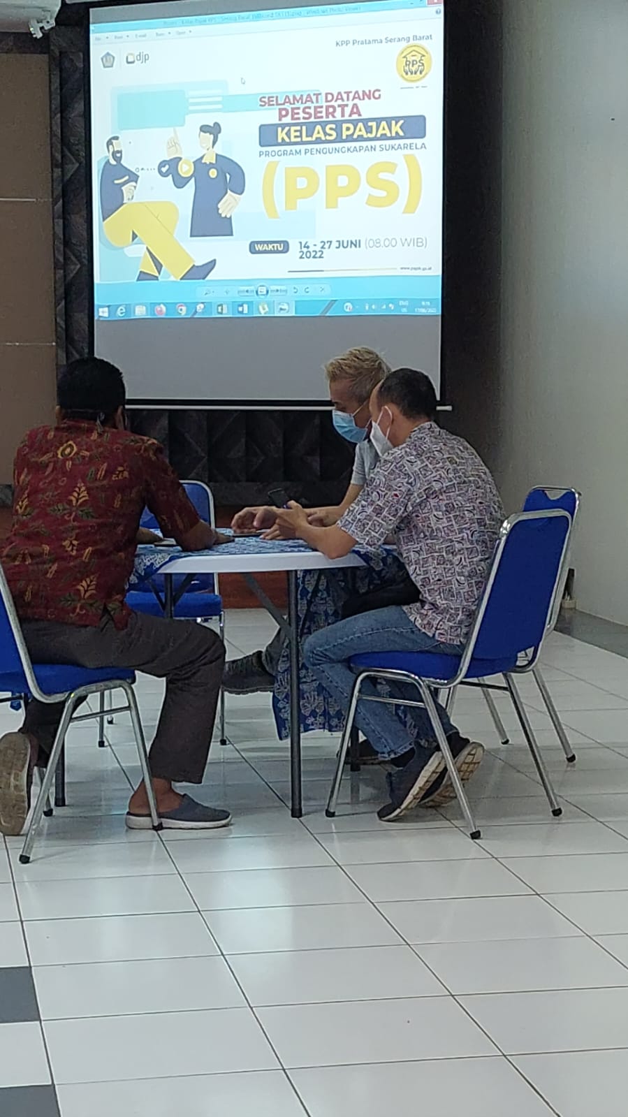 Kantor Pelayanan Pajak (KPP) Pratama Serang Barat mengadakan edukasi kelas pajak terkait Program Pengungkapan Sukarela (PPS) kepada wajib pajak, bertempat di Aula Lantai 3 KPP Pratama Serang Barat, Serang (Jumat, 17/6).