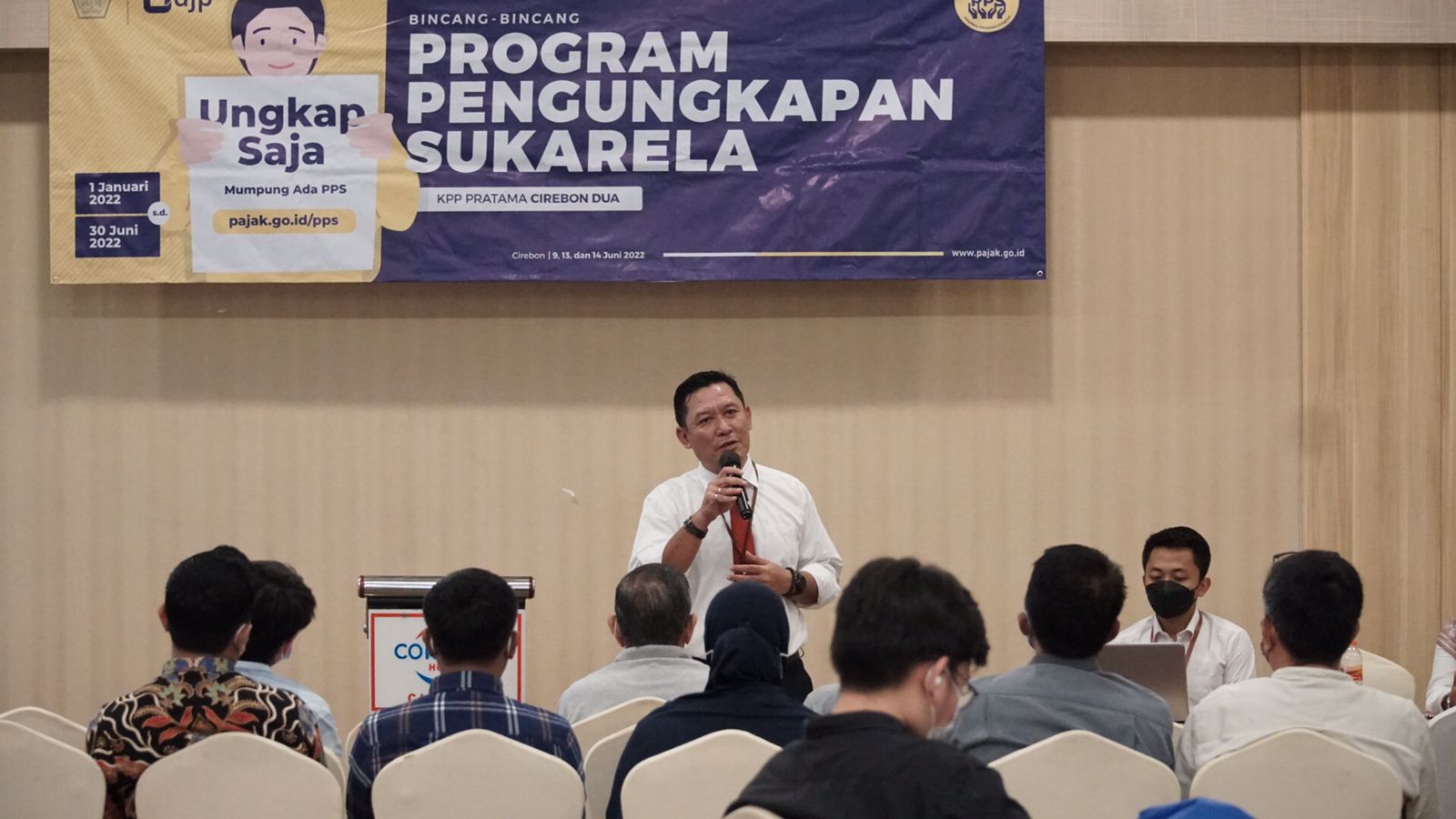 Kantor Pelayanan Pajak (KPP) Pratama Cirebon Dua menyelenggarakan acara Sosialisasi Program Pengungkapan Sukarela (PPS) yang digelar secara luring di ruang Hall Hotel Cordela, Kota Cirebon (Senin, 13/6).
