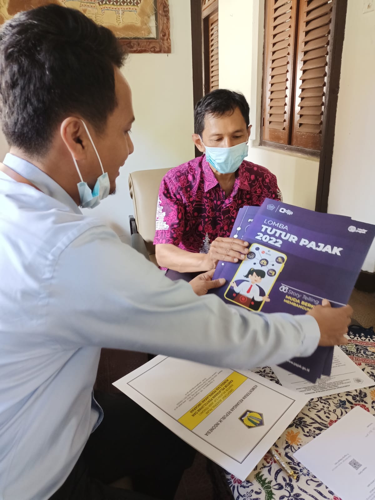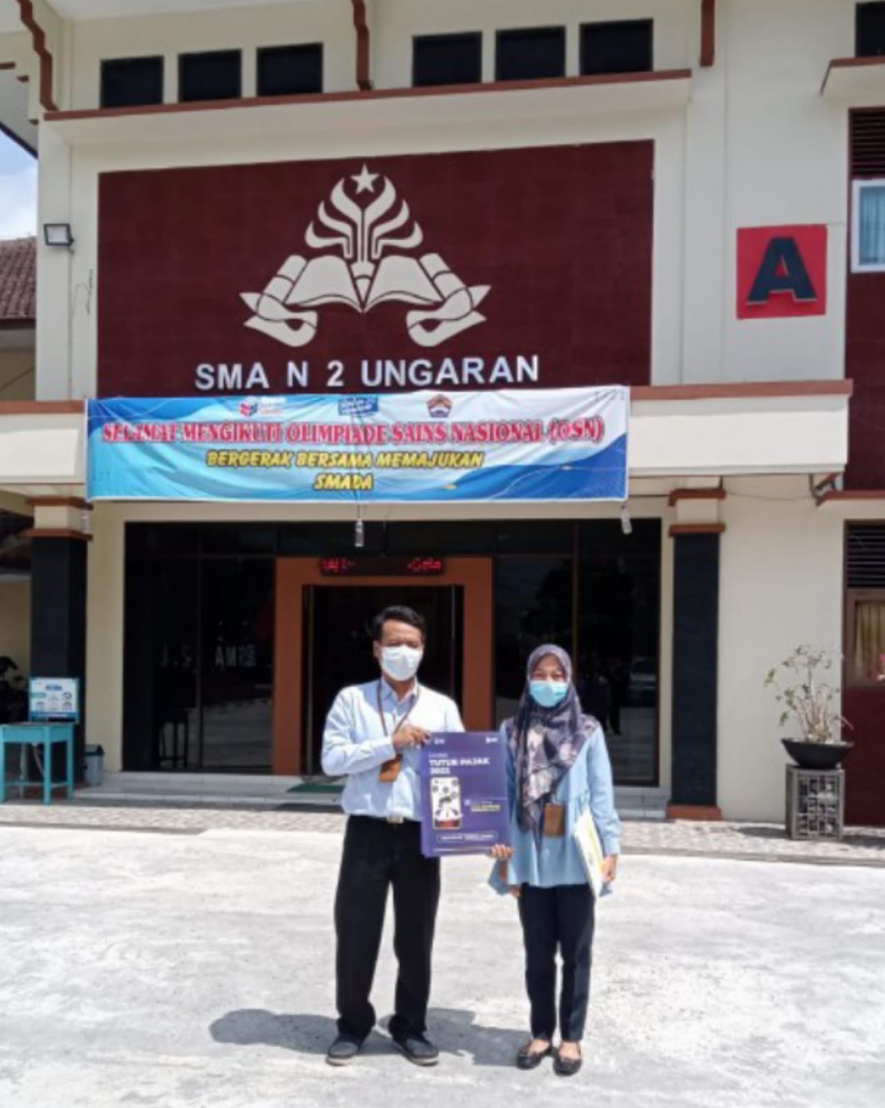 Kantor Pelayanan, Penyuluhan, dan Konsultasi Perpajakan (KP2KP) Ungaran mendatangi sekolah-sekolah di sekitar KP2KP Ungaran untuk menyampaikan informasi Lomba Tutur Pajak 2022: Story Telling dengan tema “Muda Berkreasi, Membangun Negeri” (Rabu, 3/8).
