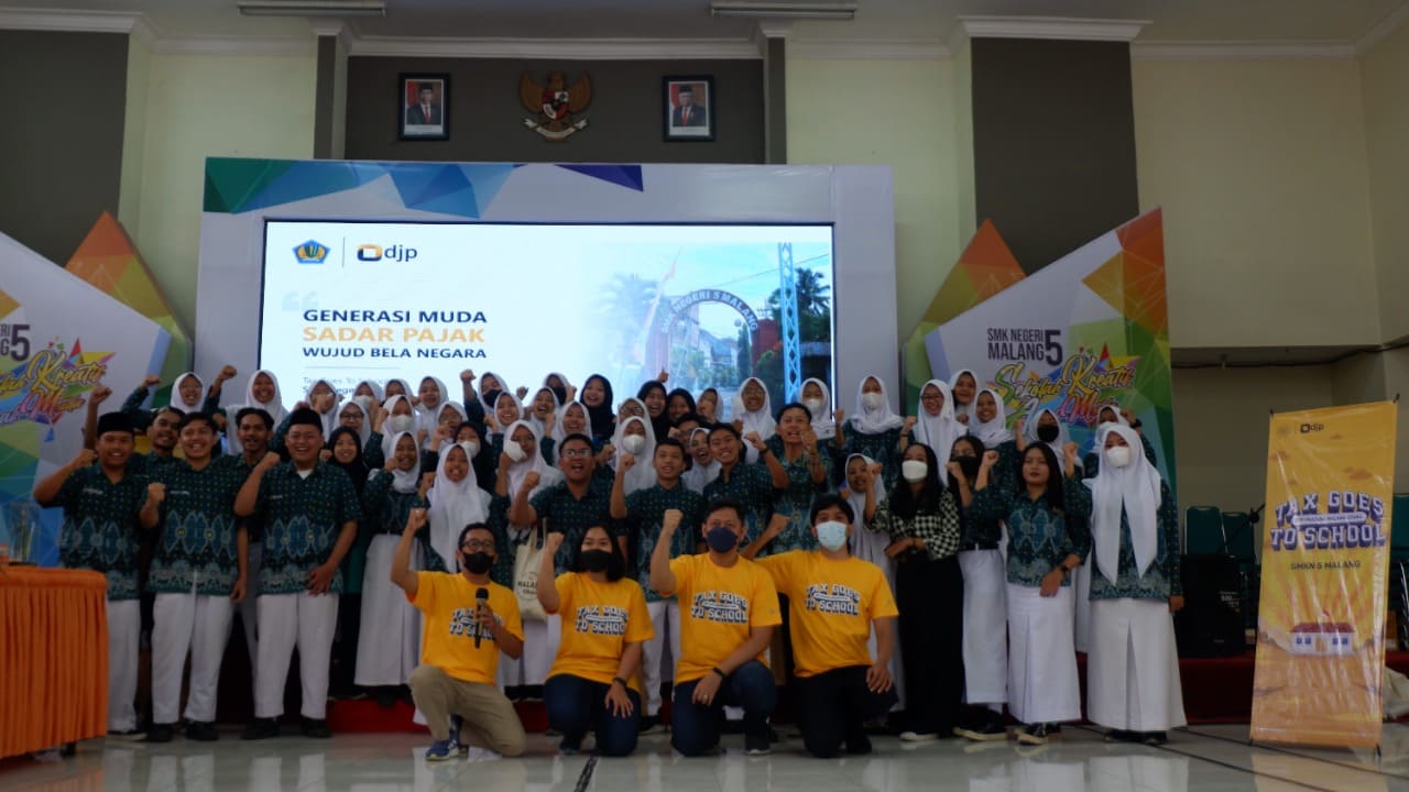 Kantor Pelayanan Pajak (KPP) Pratama Malang Utara bekerja sama dengan SMK Negeri 5 Malang menyelenggarakan acara Tax Goes To School di Malang (Kamis, 4/8). Acara diadakan dengan Tema: Generasi Muda Sadar Pajak Wujud Bela Negara.