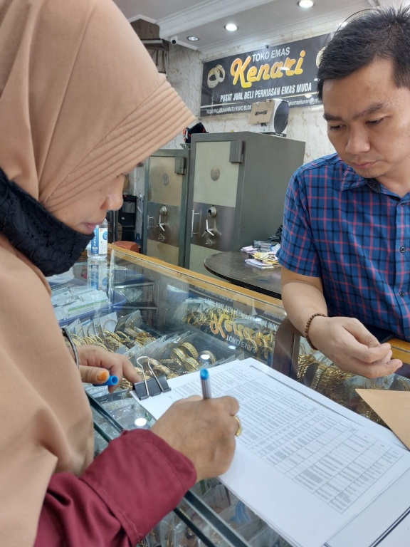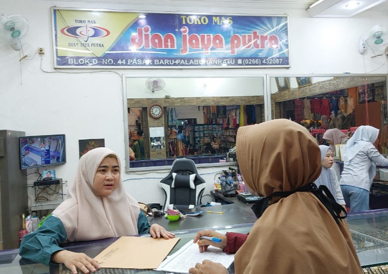 Account Representative (AR) Seksi Pengawasan III Kantor Pelayanan Pajak (KPP) Pratama Sukabumi Sri Heni Purnomowati mengunjungi beberapa toko perhiasan emas di Pasar Pelabuhan Ratu, Jalan Siliwangi, Pelabuhan Ratu, Kab. Sukabumi, (Kamis, 25/8).